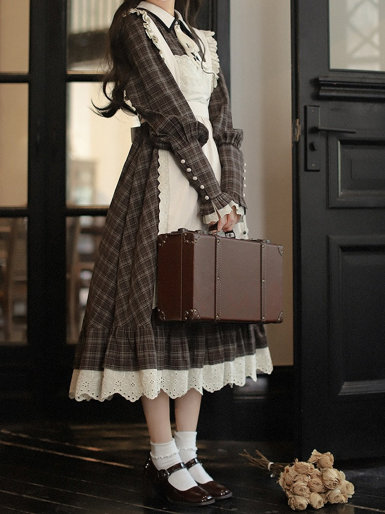Beige Lace Trim Apron with Bowknot Decoration