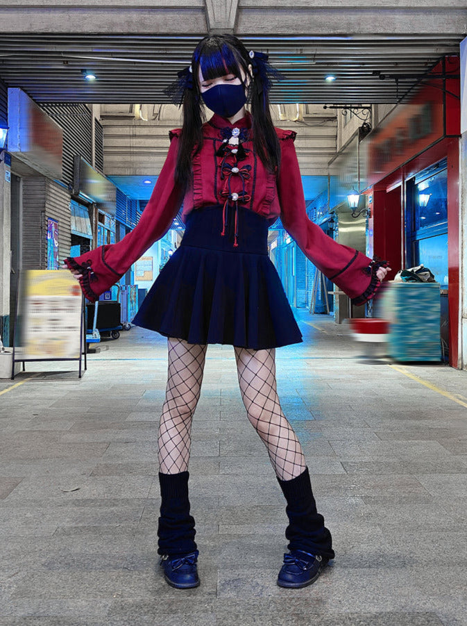 Lace Buckle Ruffle Shirt China Sleeve Bell