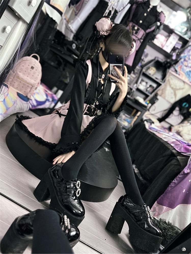 Black and White Old School Lolita Fashion Dress Bowknot Lolita JSK Set