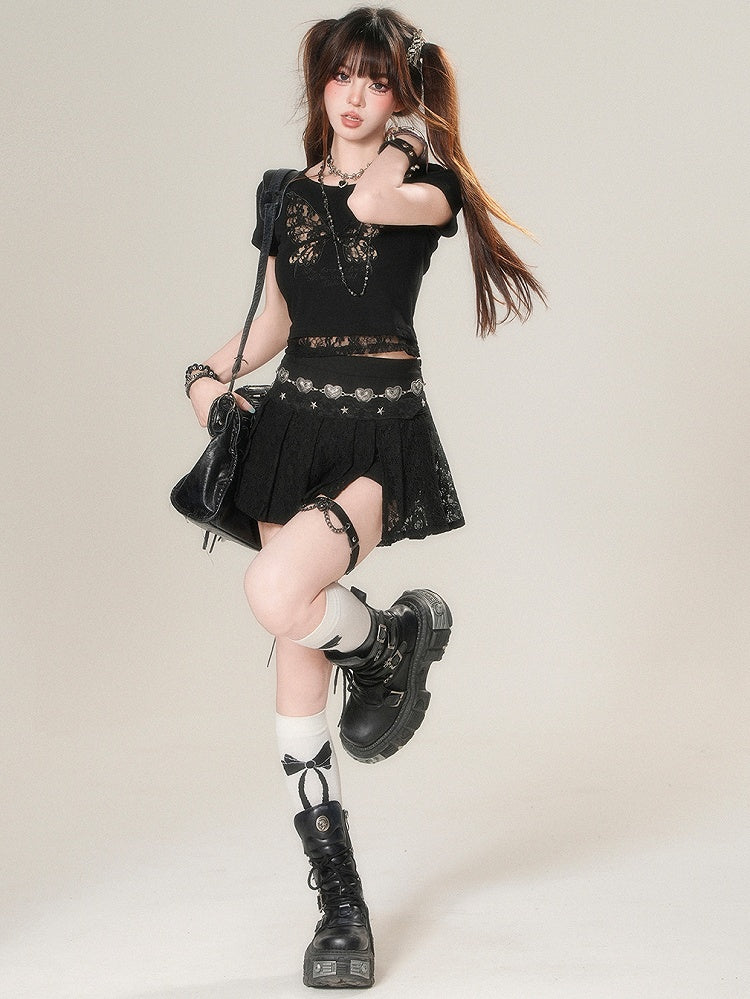 Beige/Black Bittersweet Glamorous Lace Butterfly T-shirt