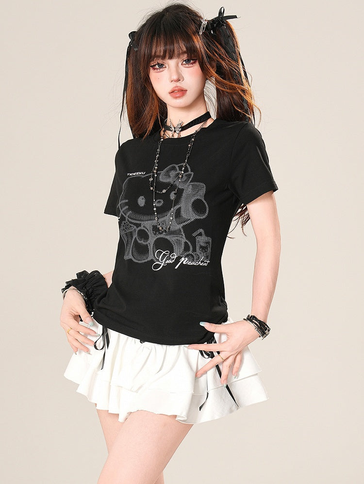 Black/White Bittersweet Glamorous Kitty And Letter Print T-shirt
