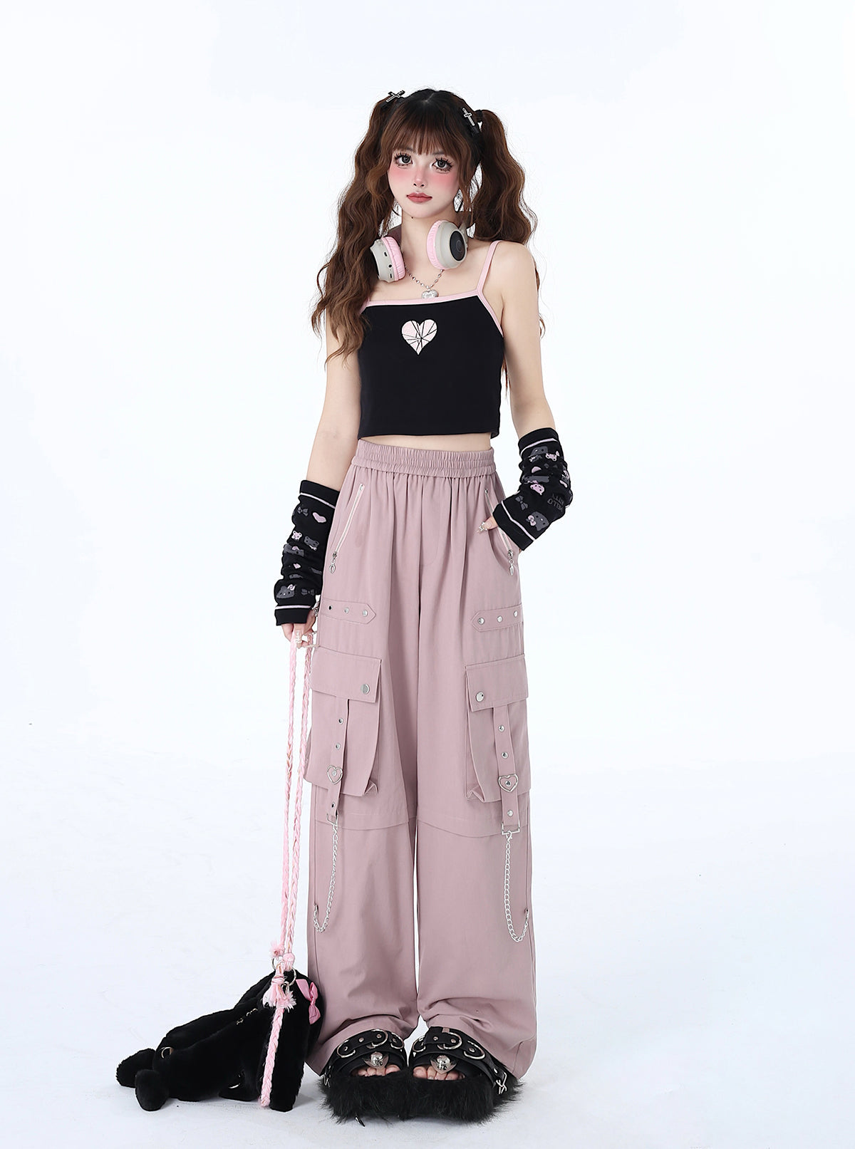 These sweet loose cargo pants are perfect for any casual outfit. With plenty of pockets for convenience and comfort, these pants are a versatile addition to any wardrobe. Perfect for a cute and charming look.