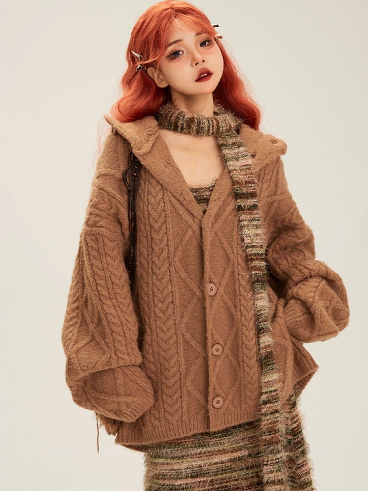 Pink & Green Striped Knit Slip Dress for Fall Winter with Matching Scarf