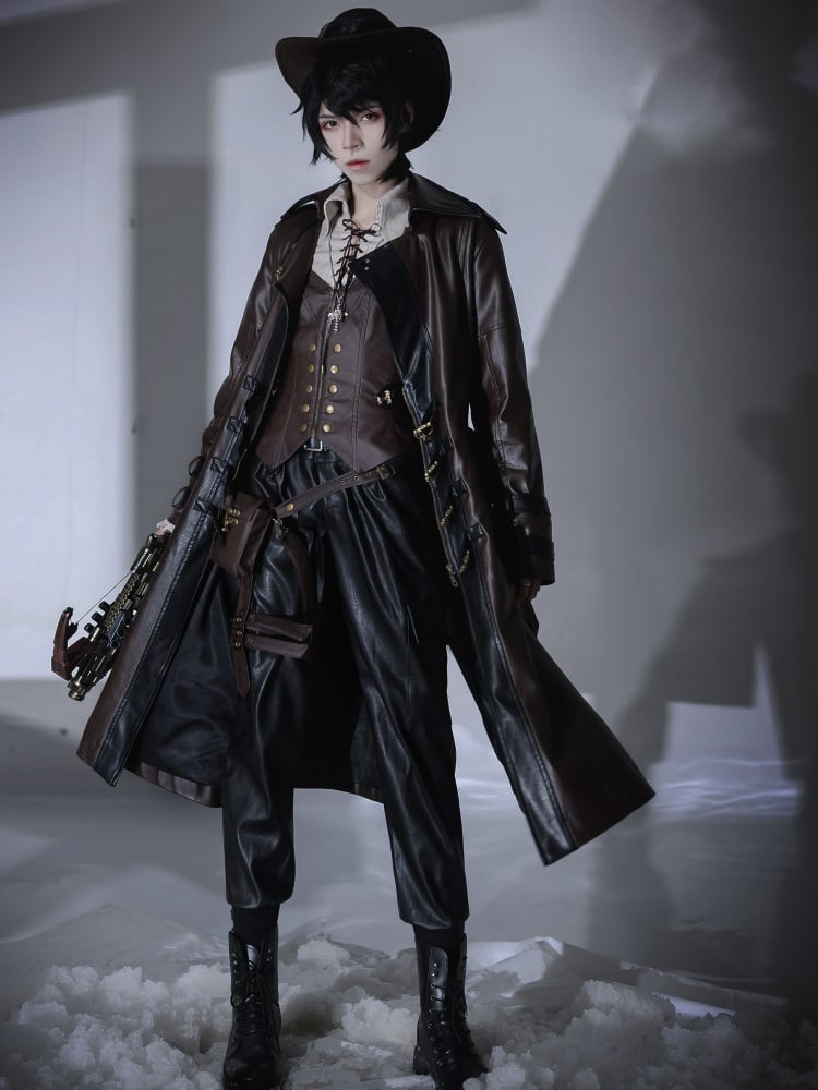 Midnight Hunter Brown Steampunk Lolita PU Leather Trench Coat