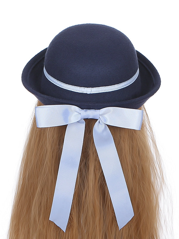 Navy Blue Hat with Bow at Back