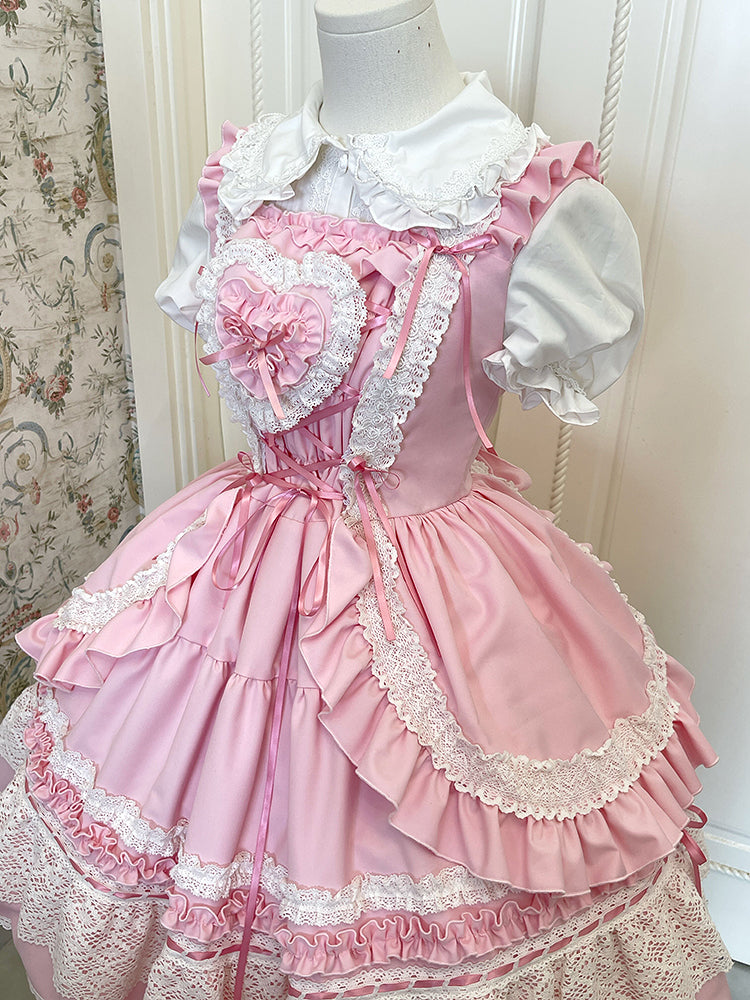 Pink Old School Lolita Dress Detachable Padded Heart Bodice Jumper Skirt