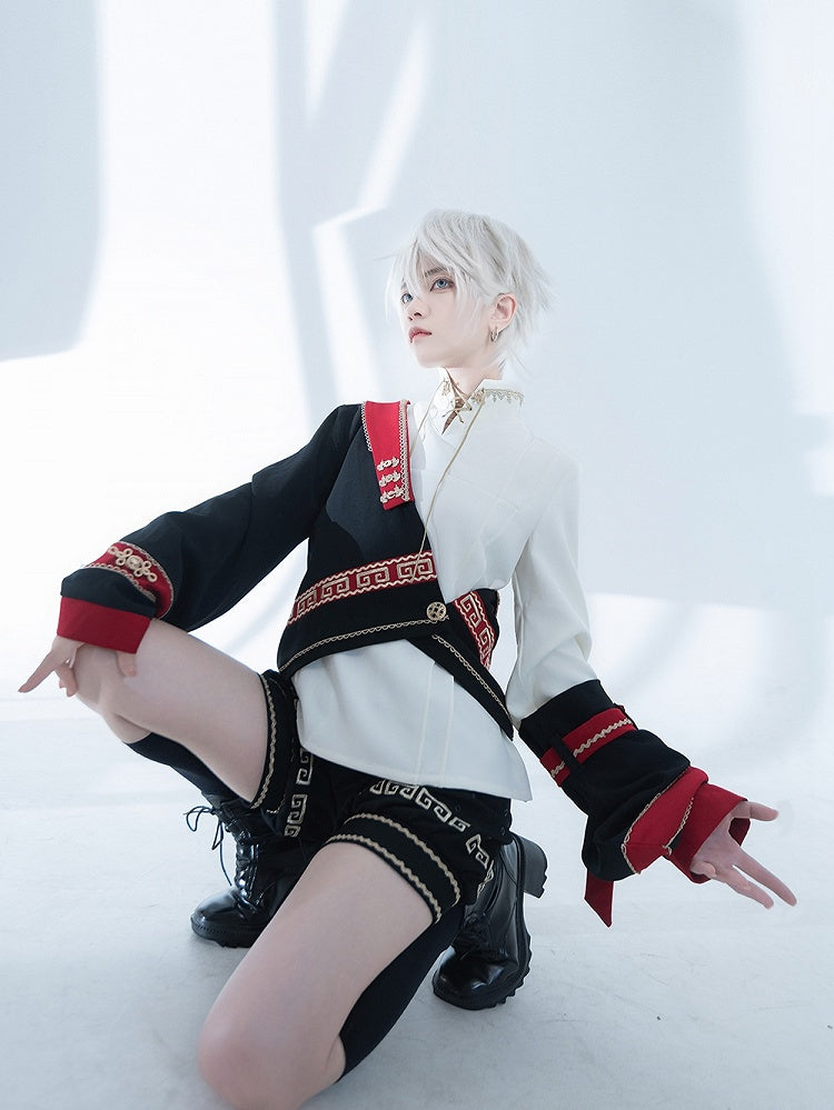 Ouji Asymmetrical Embroidery with a Sleeve Separate Top Chinoiserie