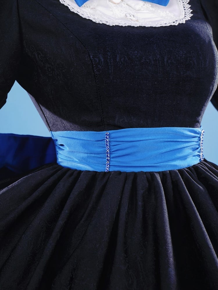Blue and White Old School Lolita Fashion Dress Bowknot Detais JSK Set