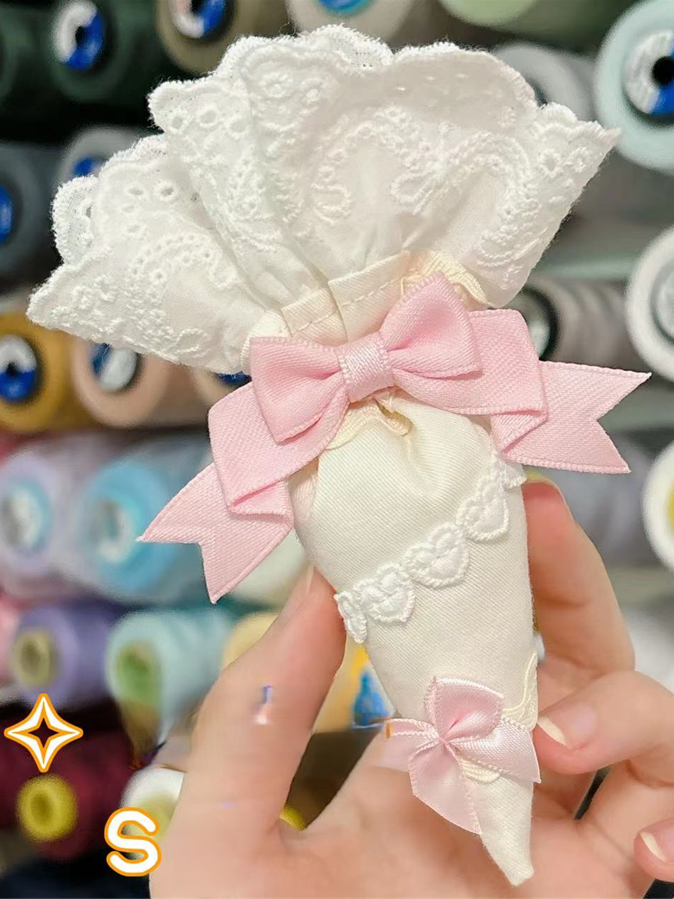 Light Yellow Pastry Piping Bag–Shaped Lolita Brooch with Lace Ruffles and Bowknots