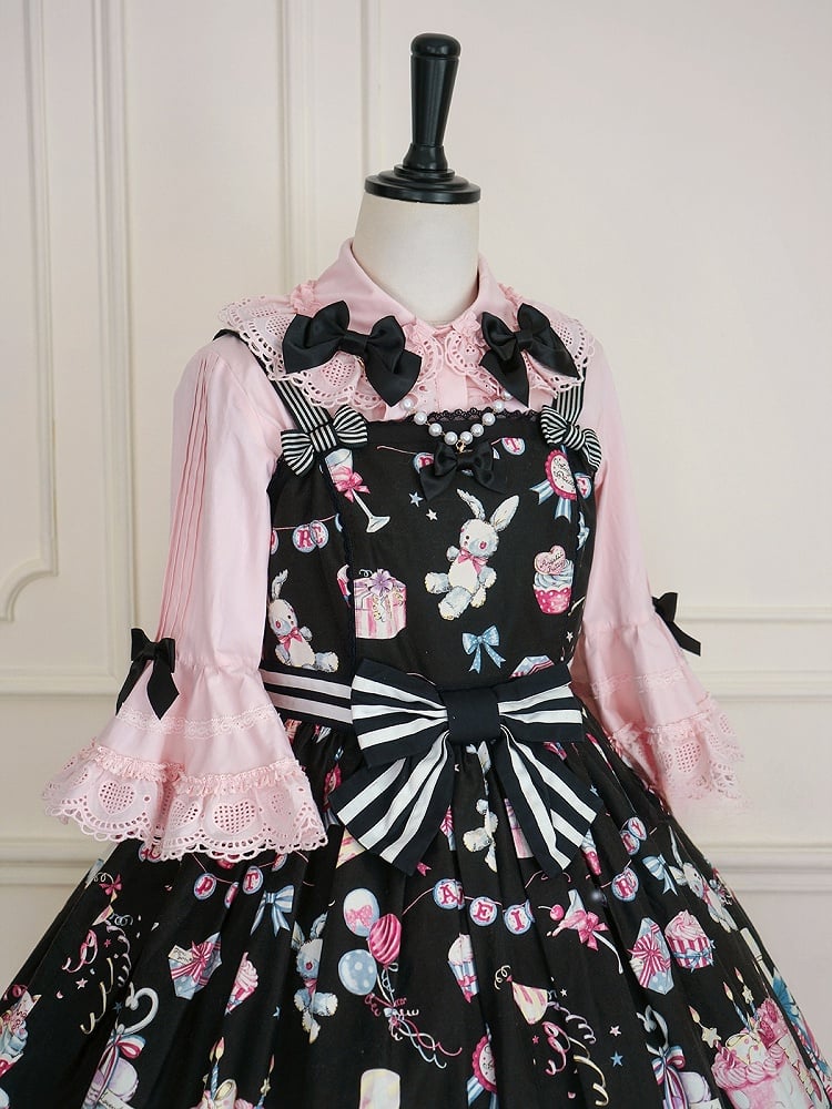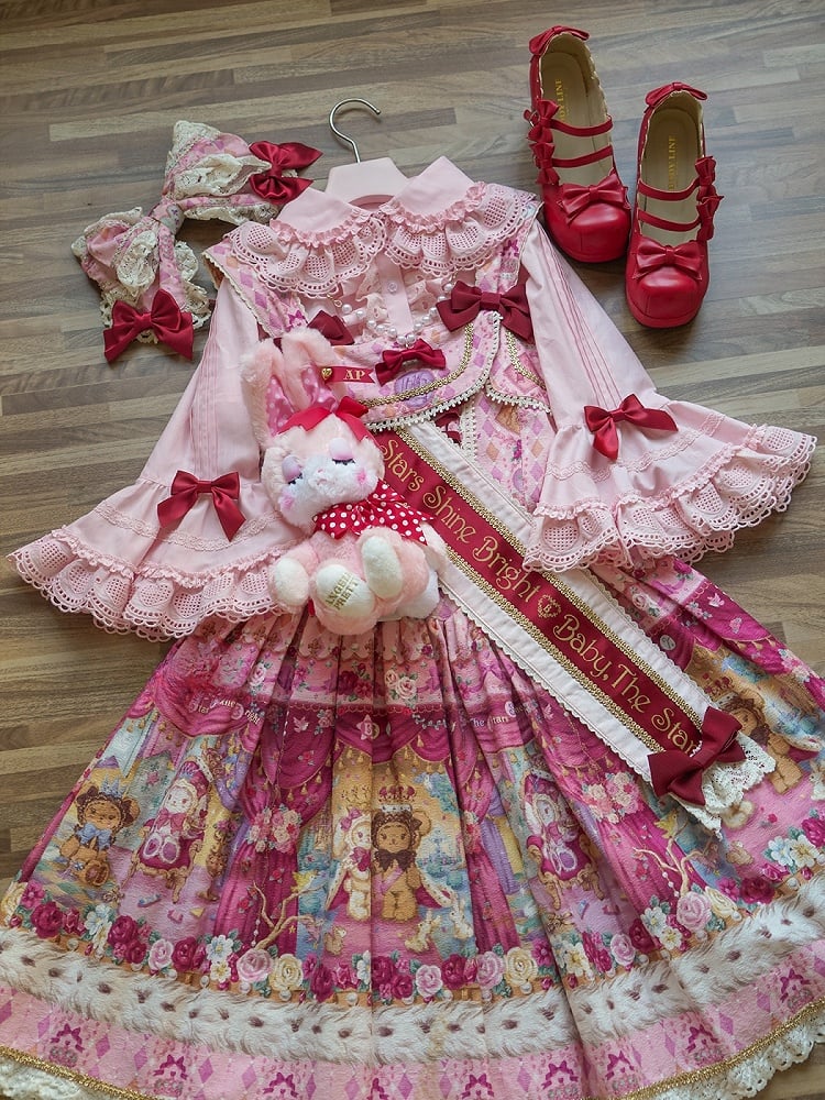 Pink and White Old School Lolita Fashion Dress Bowknot Detais Lolita JSK Set