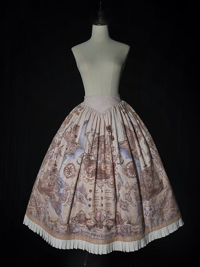Creamy Corset Belt Waist Pirate Ship Print Lolita Skirt