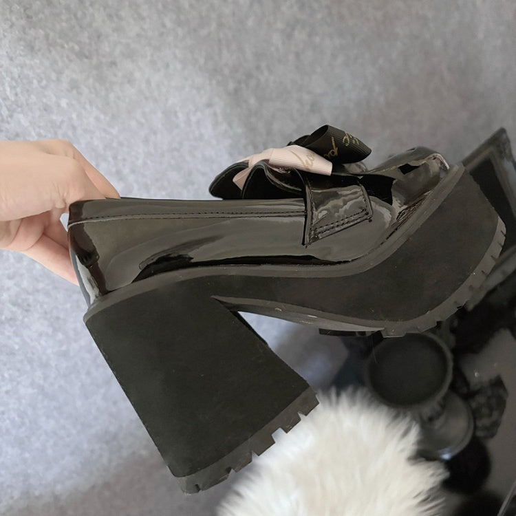 Platform High Loafers Bow Black Top Letter Detachable Block Heel Print Y2K Polished with
