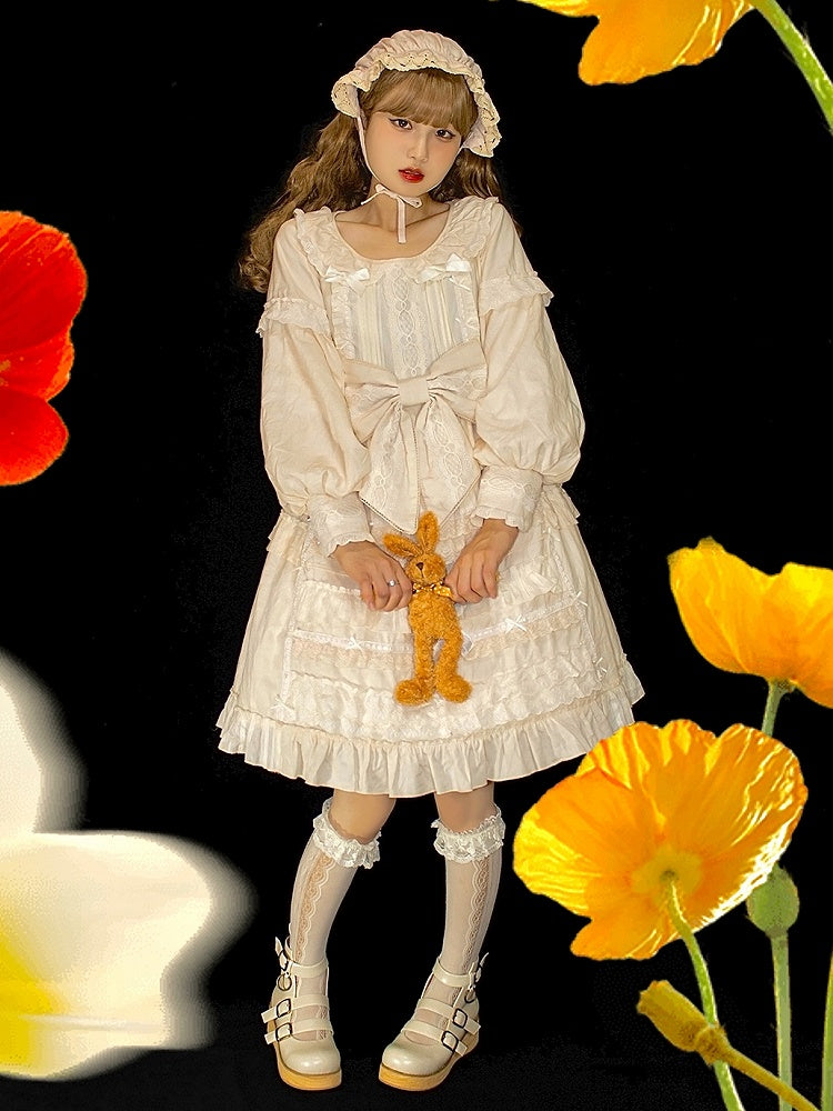 Black and White Old School Lolita Fashion Dress Bowknot Lolita JSK Set