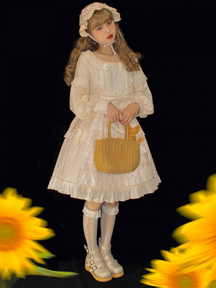 Pink and White Old School Lolita Fashion Dress Bowknot Detais Lolita JSK Set