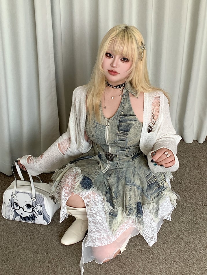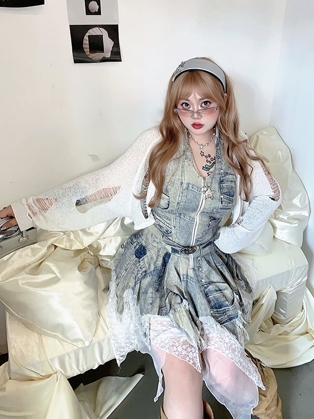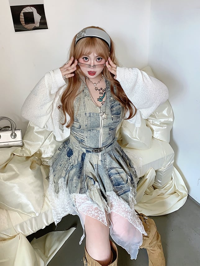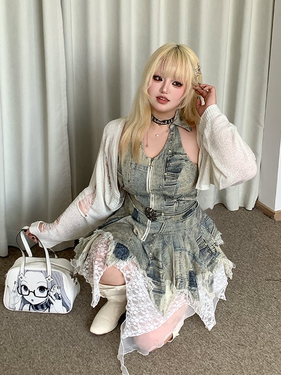 Blue and White Old School Lolita Fashion Dress Bowknot Detais JSK Set