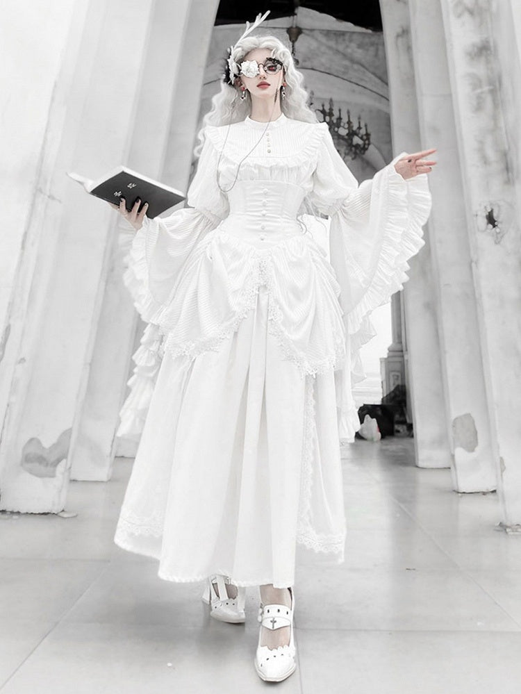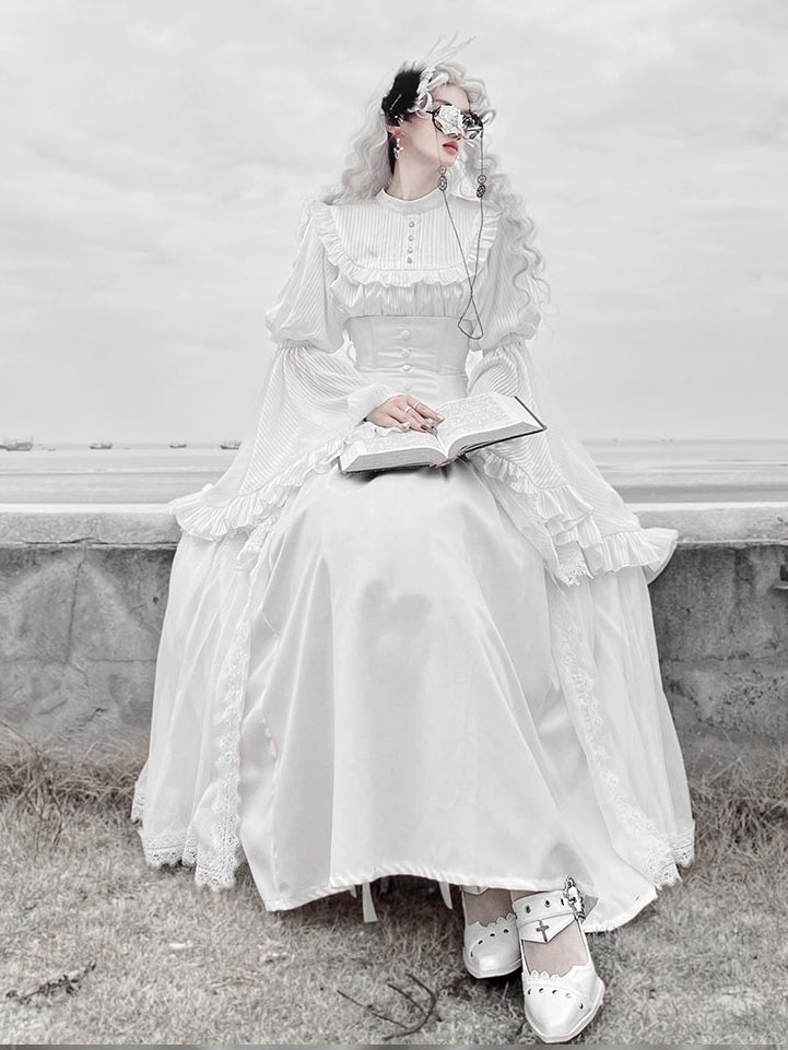 Black and White Old School Lolita Fashion Dress Bowknot Lolita JSK Set