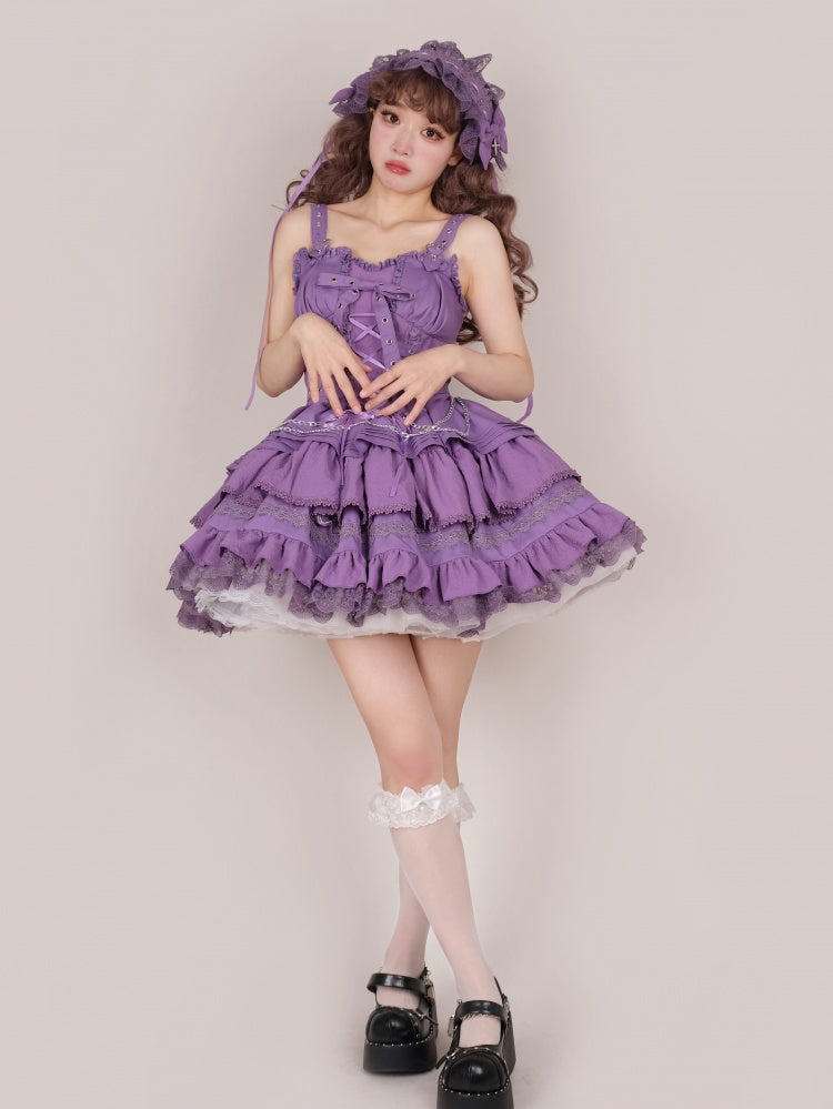 Purple Punk Goth Short Jumper Skirt Adjustable Criss-cross Straps Waist