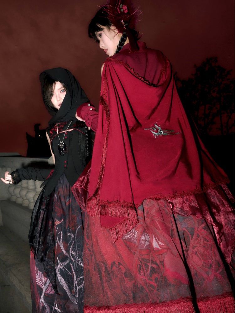 Red / Black / Purple Dragon and Moon Embroidery Shawl