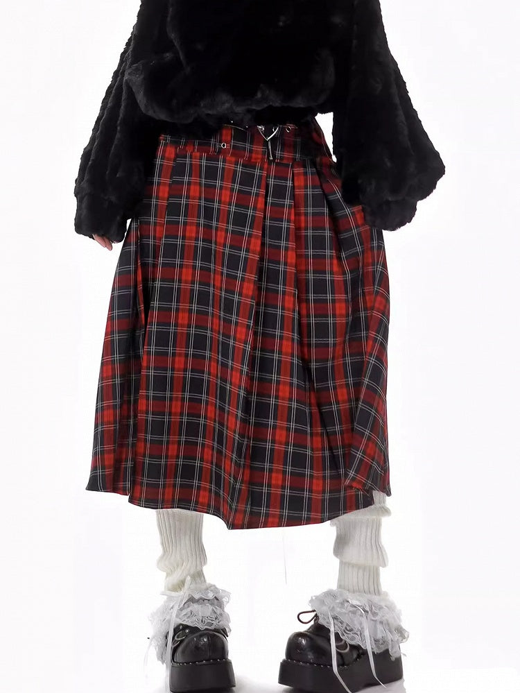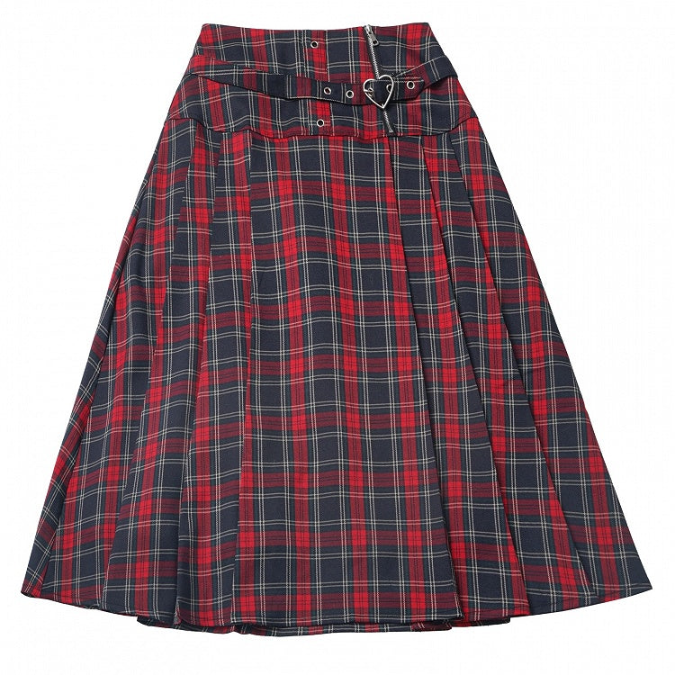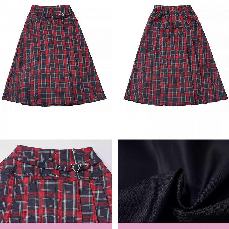 This cute plaid pleated skirt features a charming red heart buckle, perfect for adding a touch of sweetness to your outfit. Made with high-quality materials, this skirt is comfortable and stylish, making it a must-have for any fashion lover. Transform your look with this adorable addition to your wardrobe.