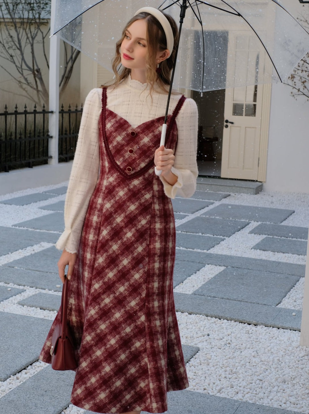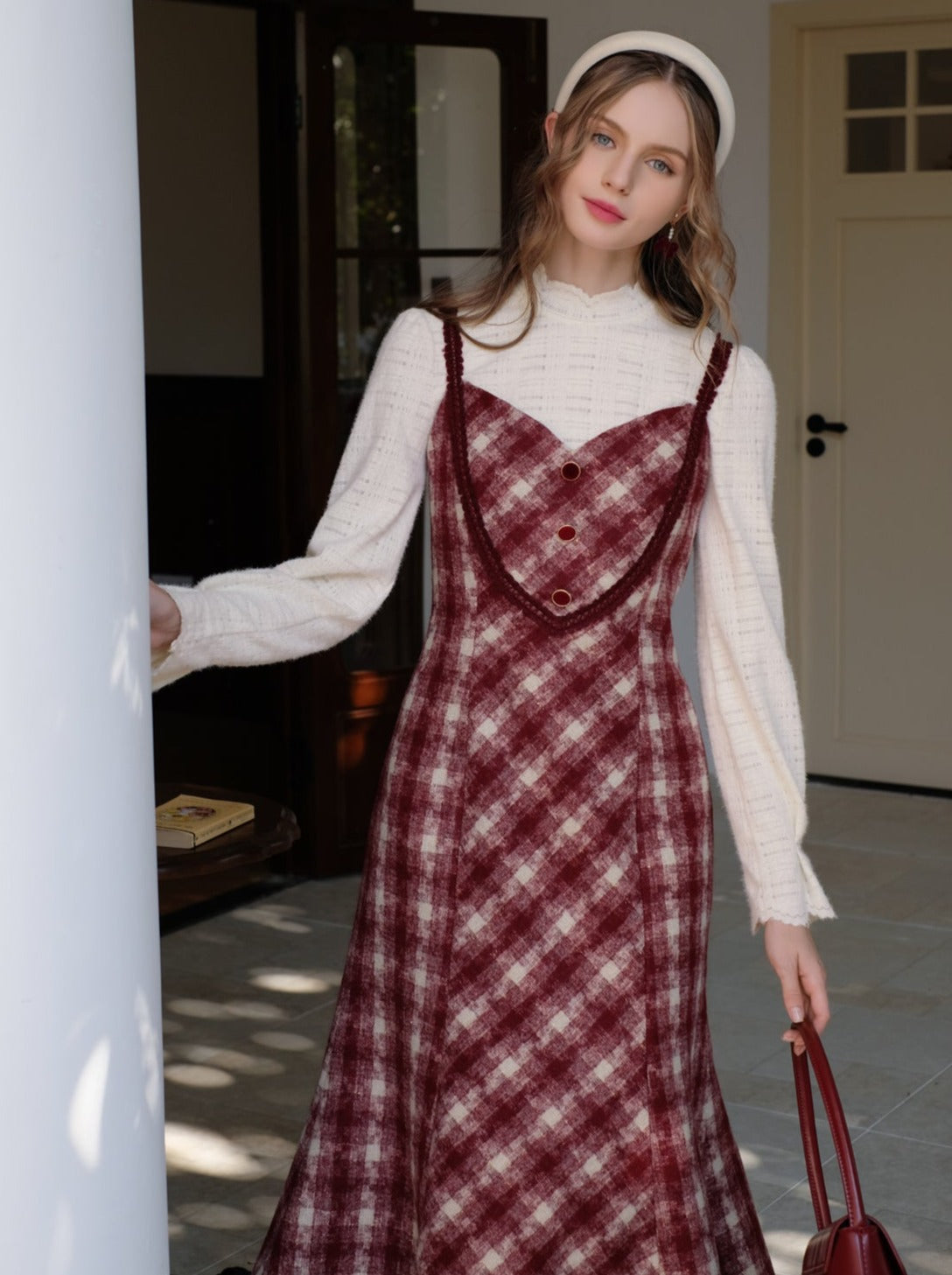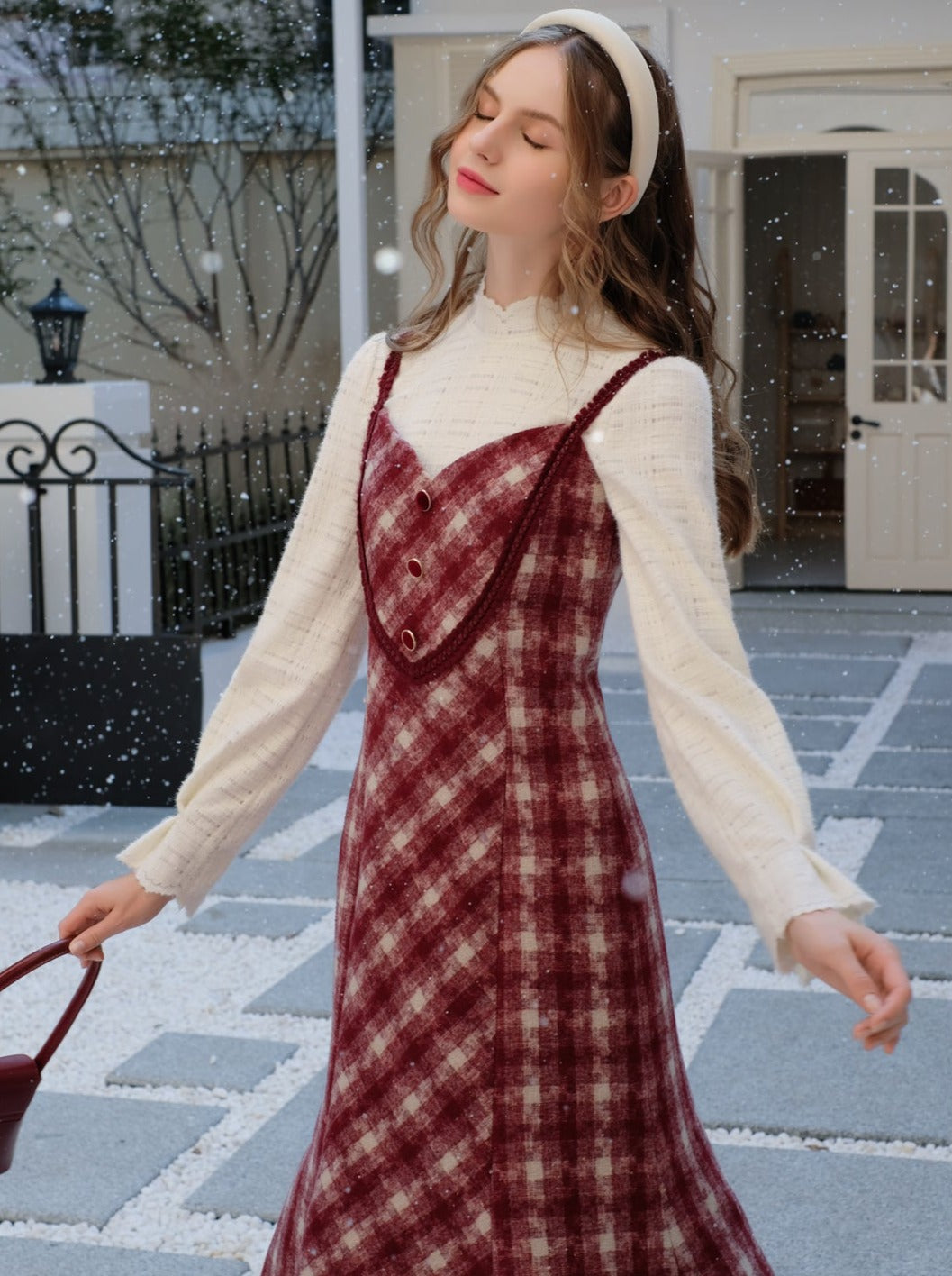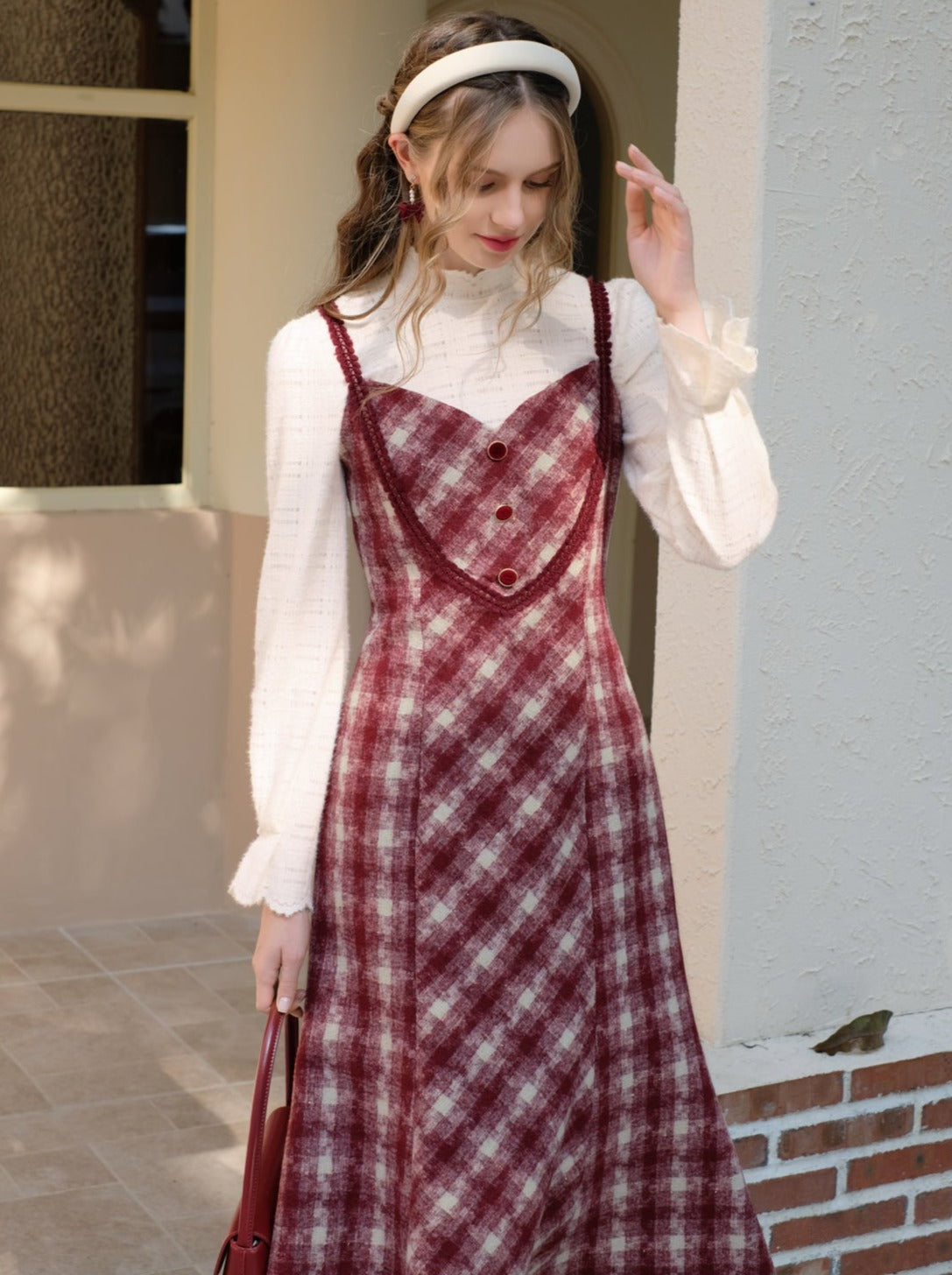 Retro White Blouse Camisole Dress + Romantic Check Pure