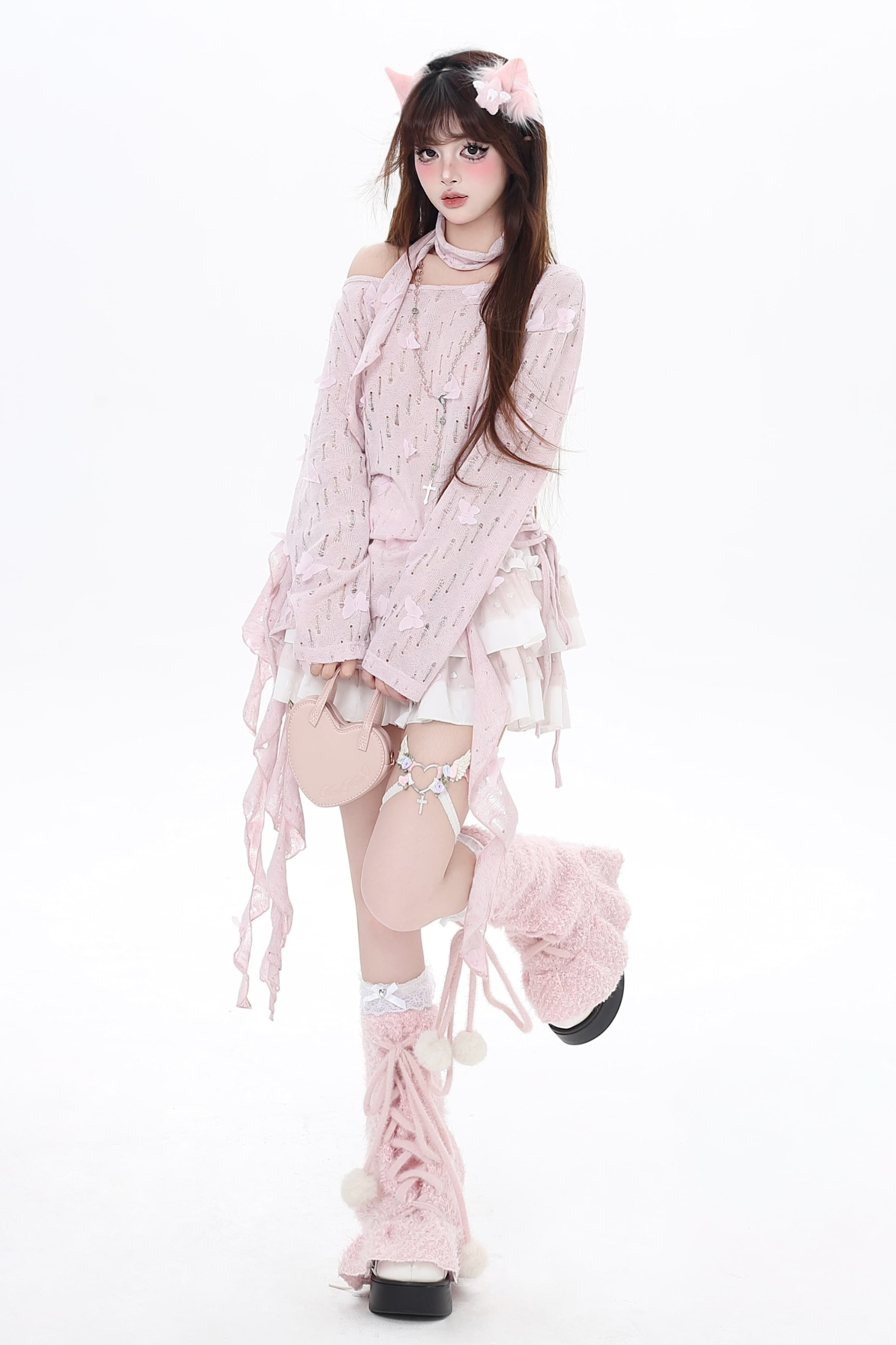 Pink and White Old School Lolita Fashion Dress Bowknot Detais Lolita JSK Set