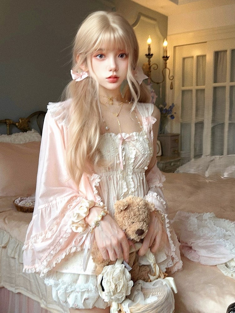 Ruffled Sun-protective Pink Sleeves With Cardigan Bell