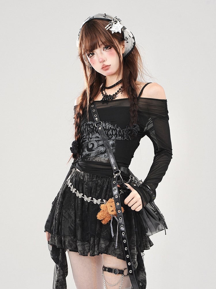 Sheer Off-Shoulder Black Top Two-Piece Set