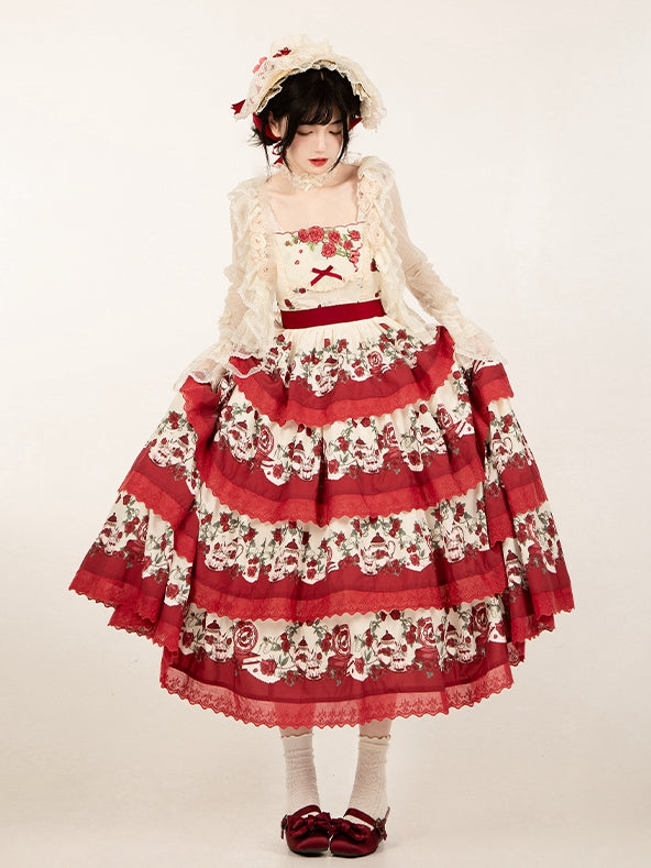 Black and White Old School Lolita Fashion Dress Bowknot Lolita JSK Set