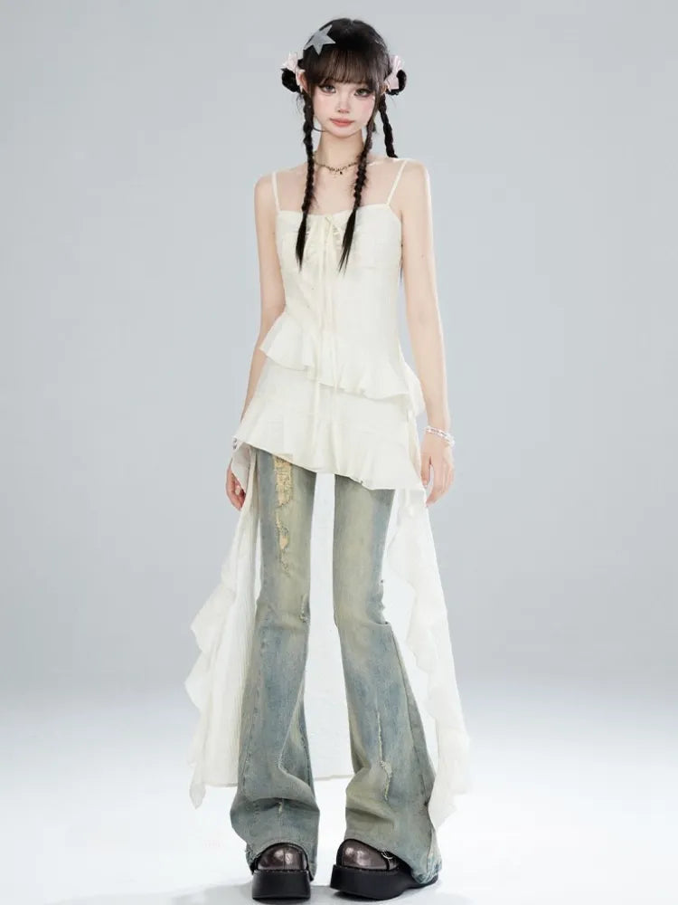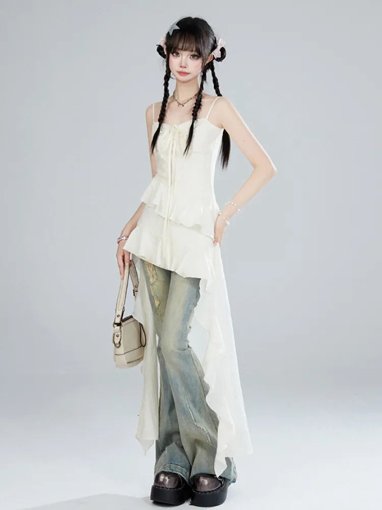 Apricot Summer Holiday Dress High-low Skirt