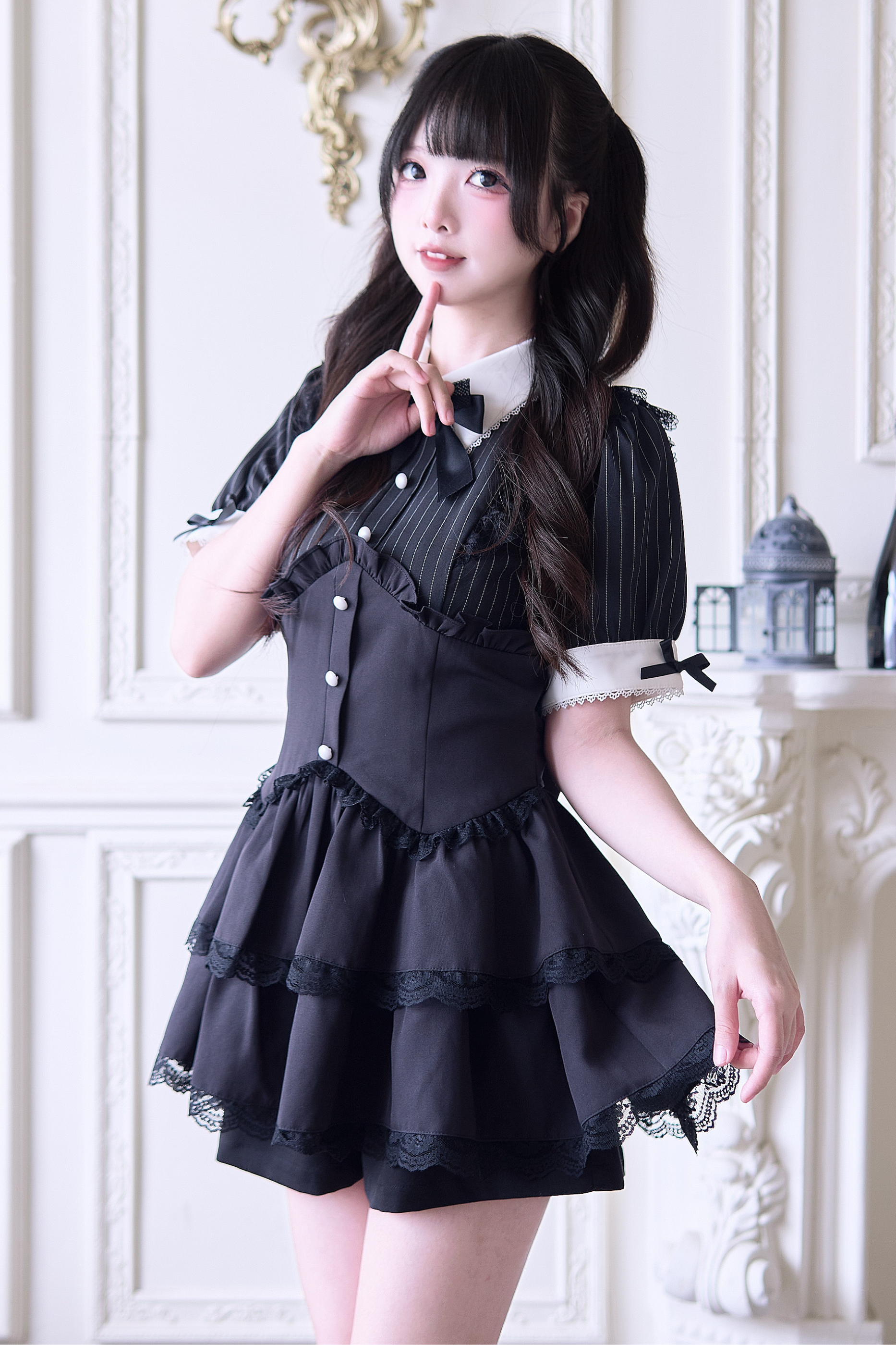 Black and White Old School Lolita Fashion Dress Bowknot Lolita JSK Set
