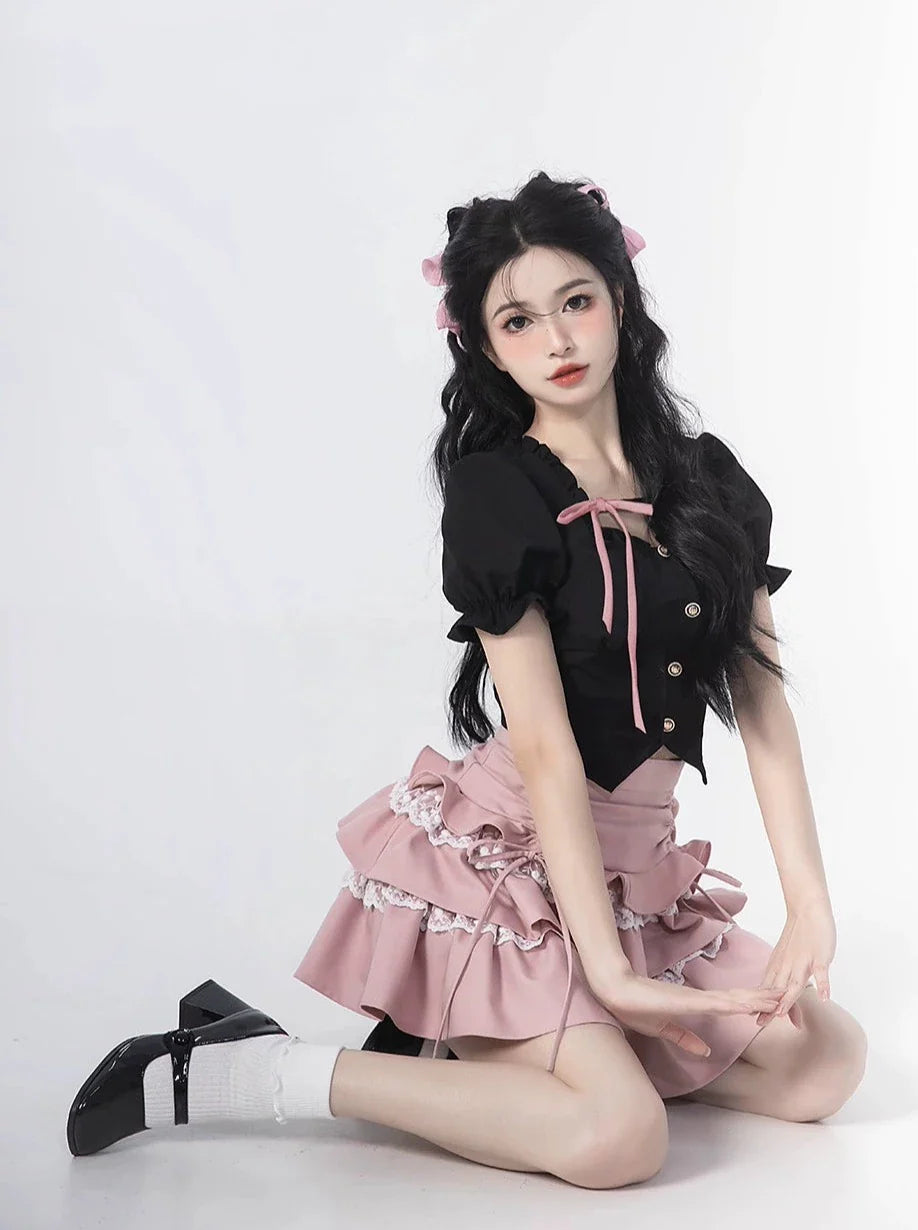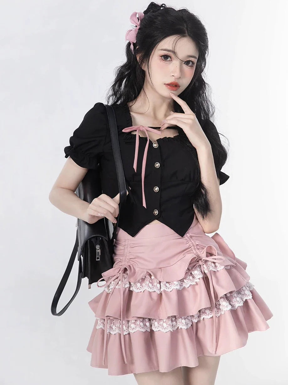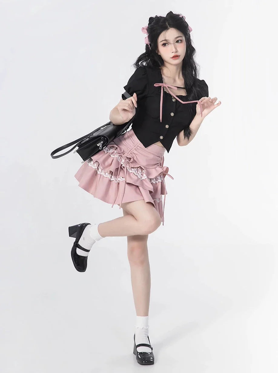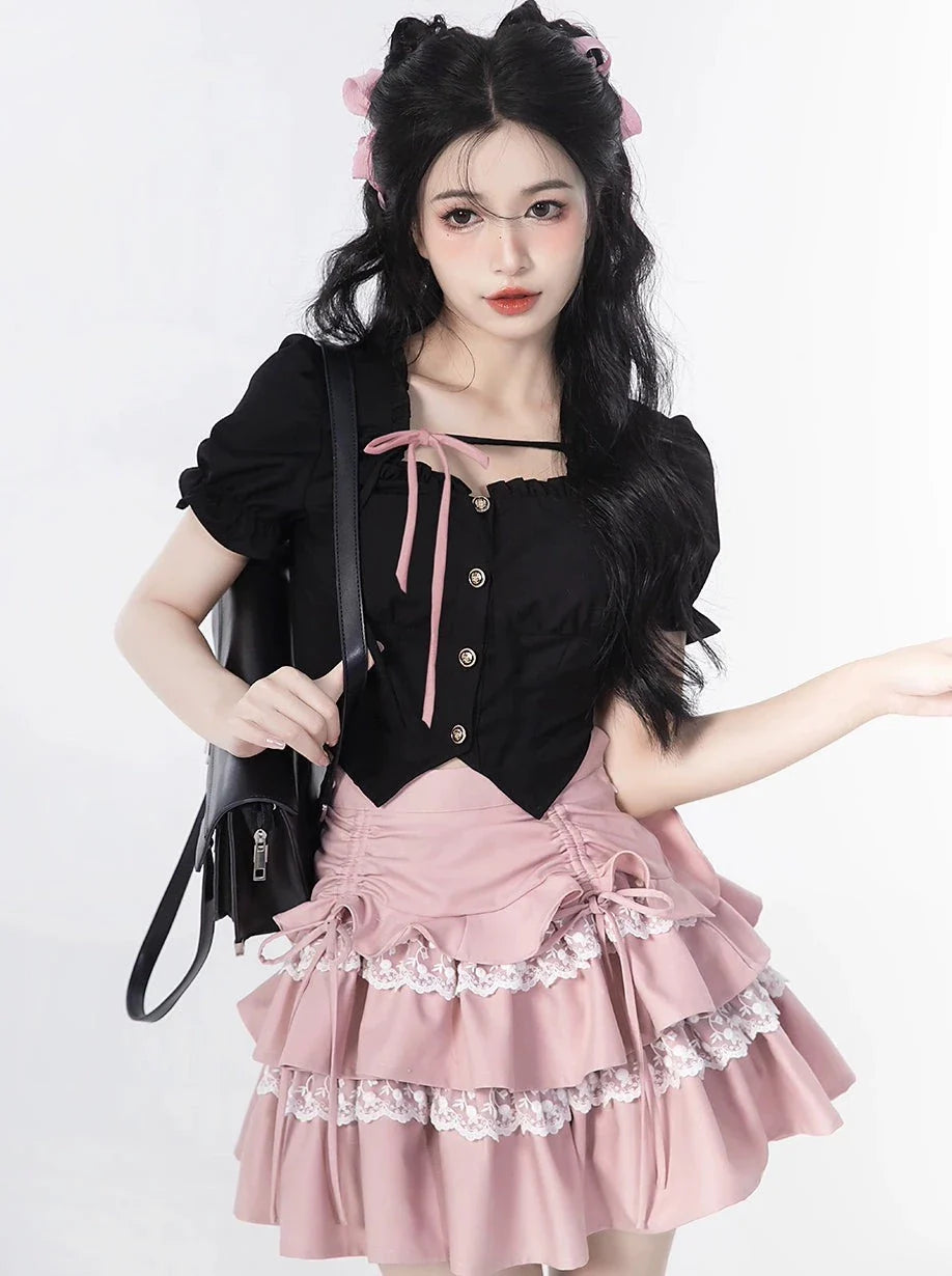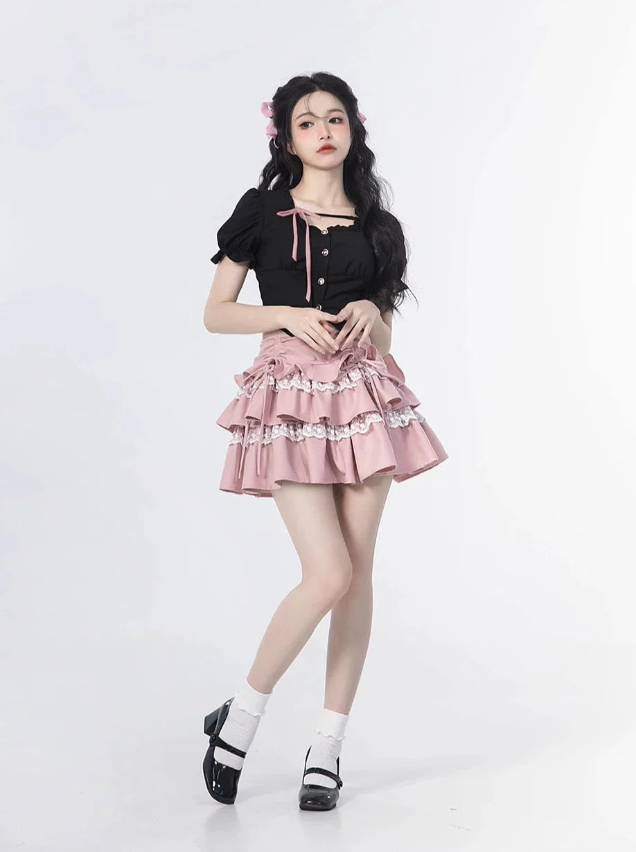 Sleeve + Skirt Cake Square Lace Top Ruffle Neck Puff