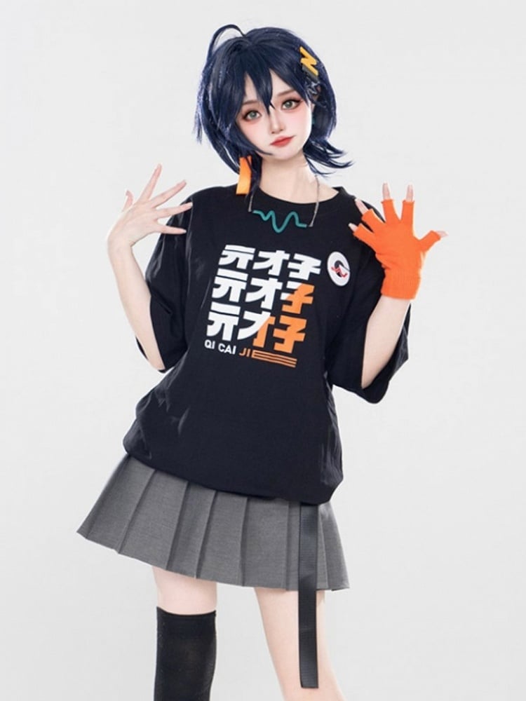 Black Short Sleeve Top Full Set: Top + Skirt + Belt