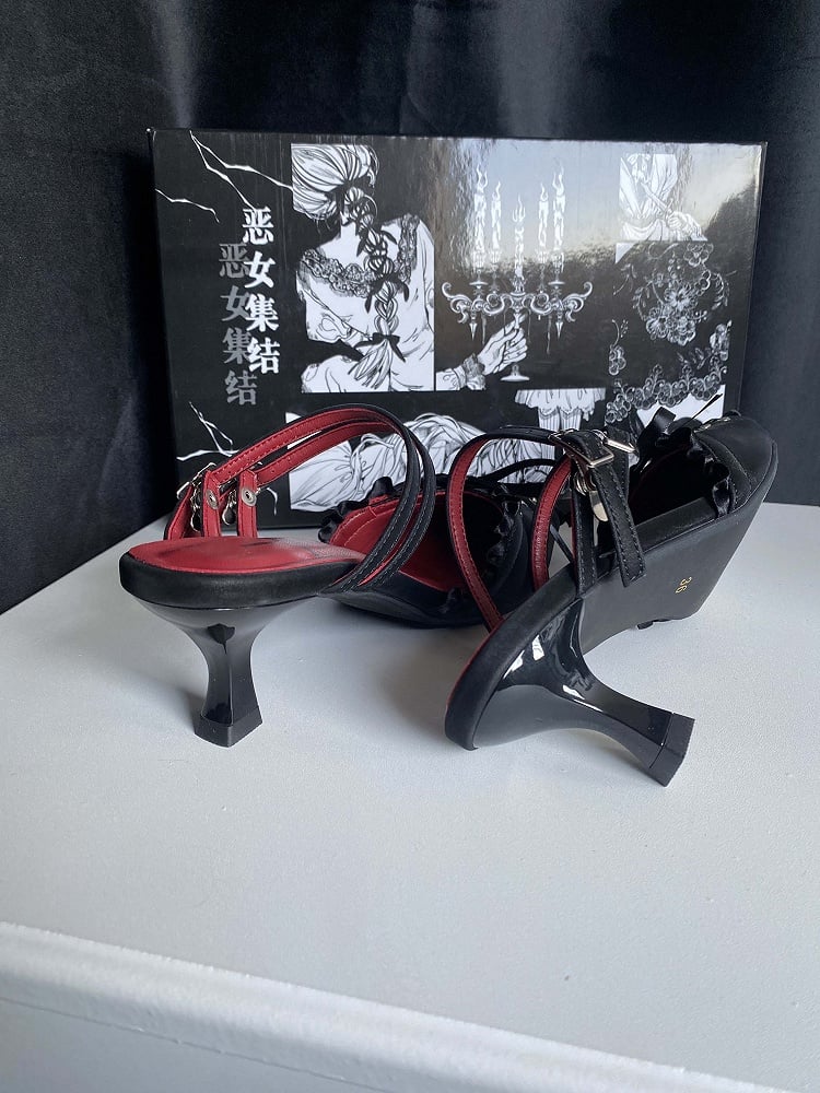 Slingback Pointed Gothic Detail Lace-up Sandals Toe Black