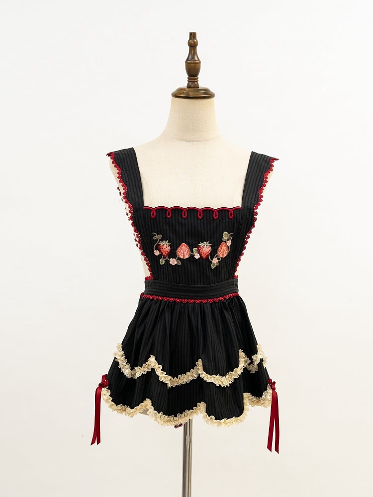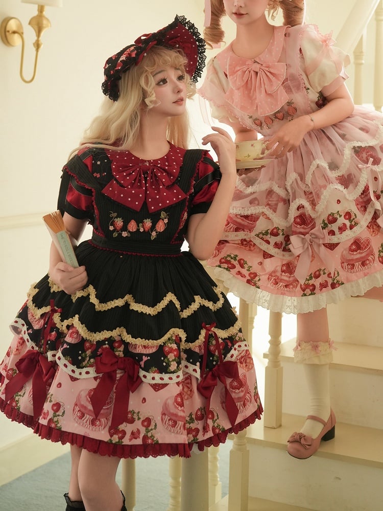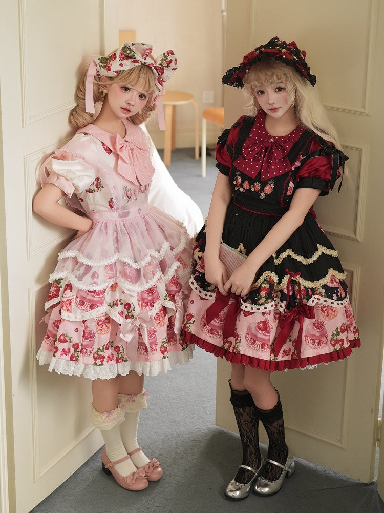 Strawberry Print Black and Red Sweet Peter Pan Collar Lolita One Piece Full Set