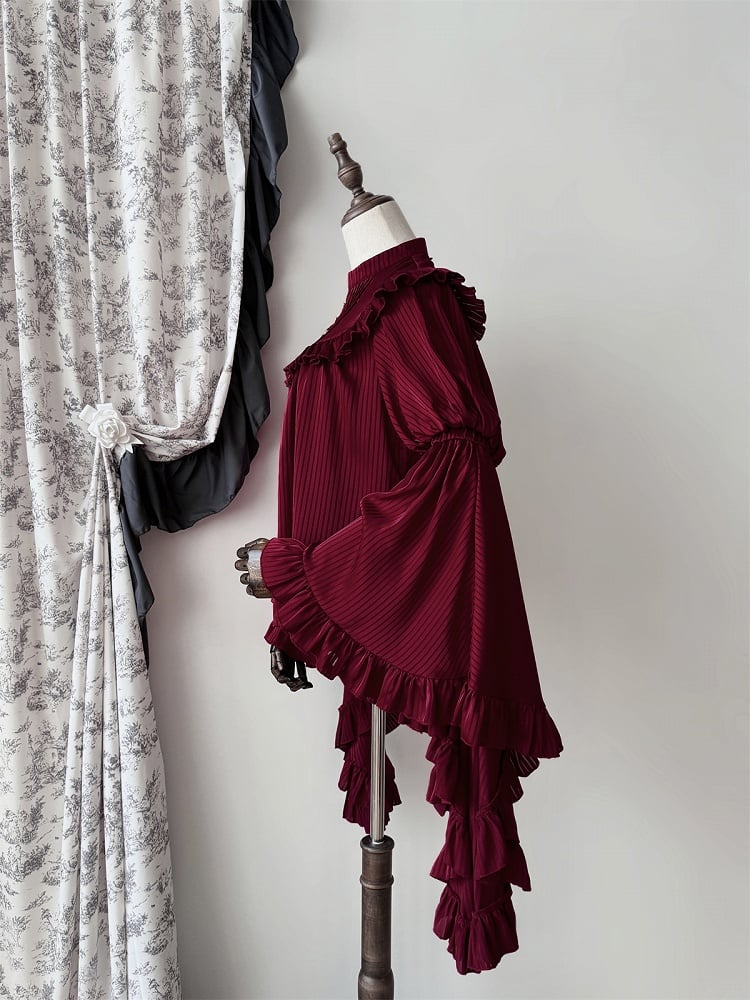 Striped Bell Fabric Gothic Blouse Sleeves Red Flounce