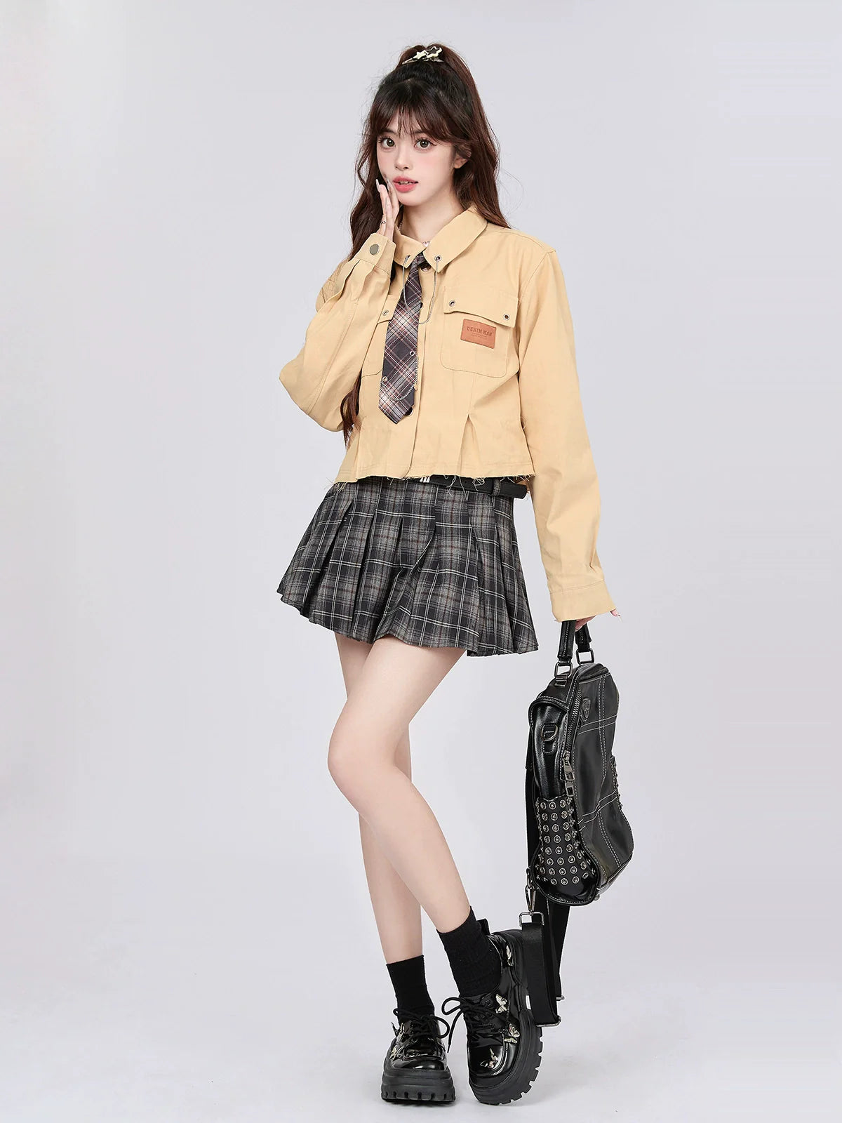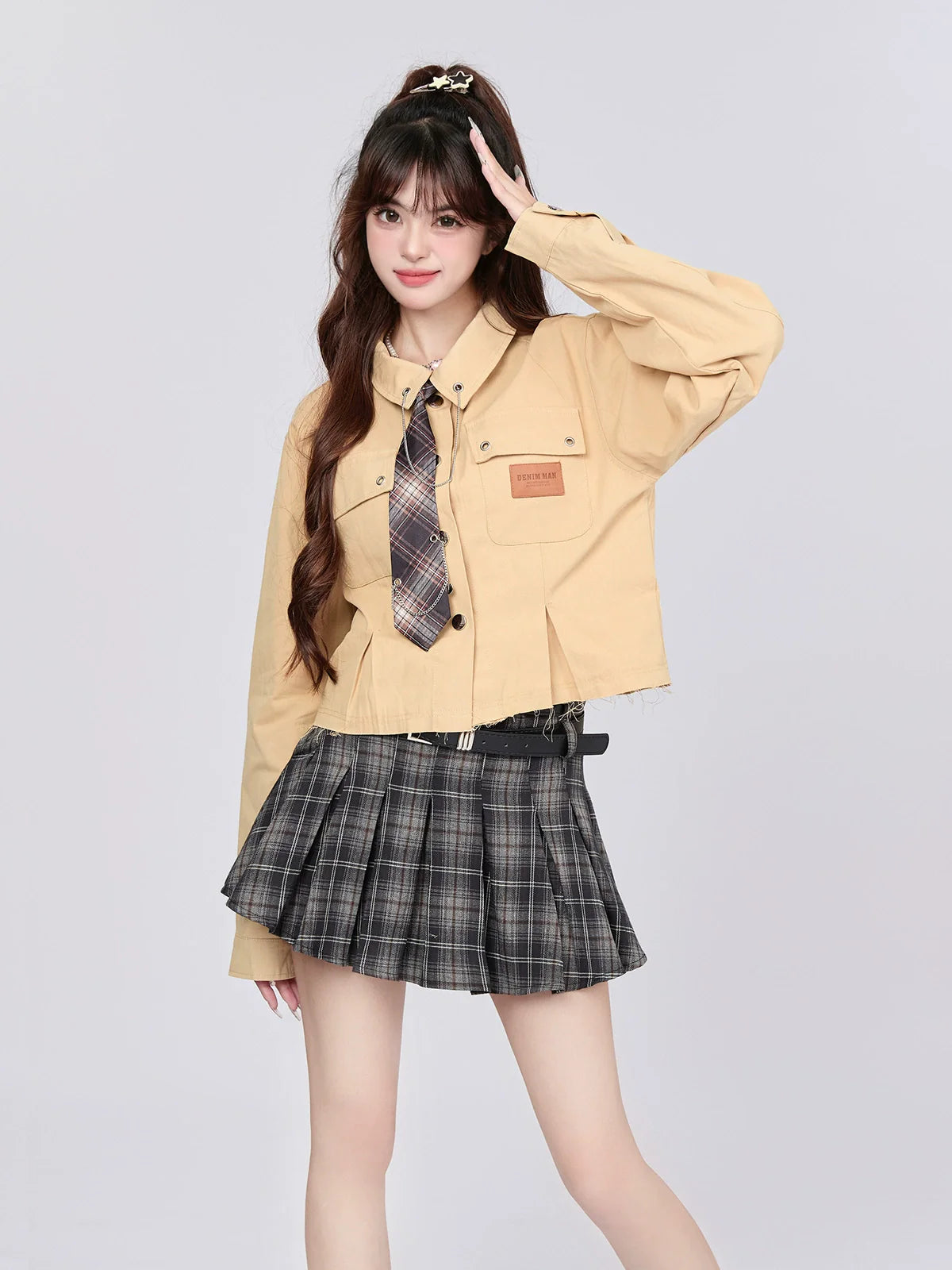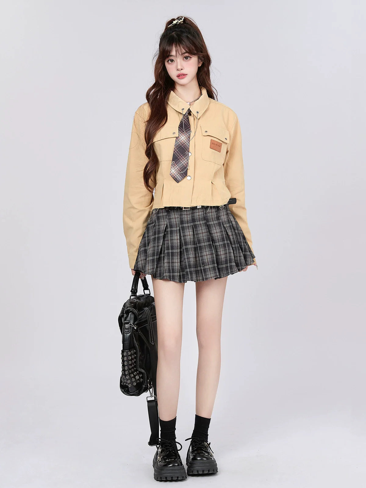 Refresh your wardrobe with the 可爱的 Style Top Retro Check Short College. Upgrade your style and make a statement with this retro check design. Perfect for a cute and stylish look, this top is sure to turn heads and make you stand out!