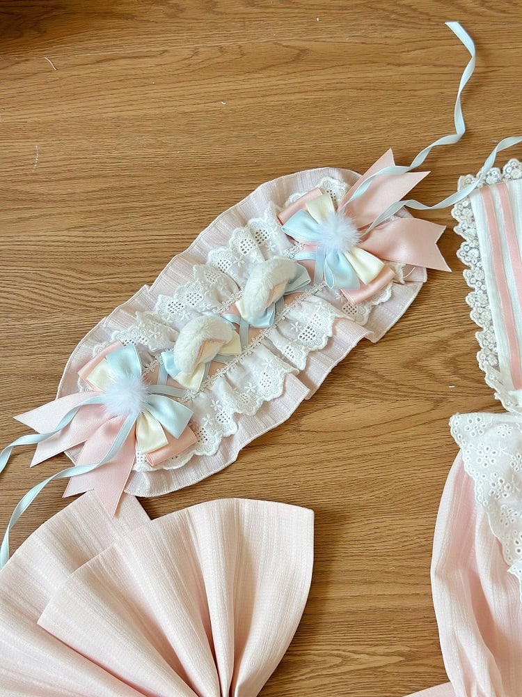 White and Pink Lolita Bonnet Choker