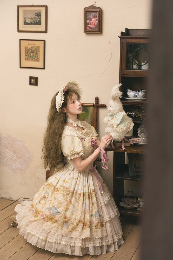 Sweet Light Print Jumper Beige Skirt Farm Sunflowers and Lolita Ducks