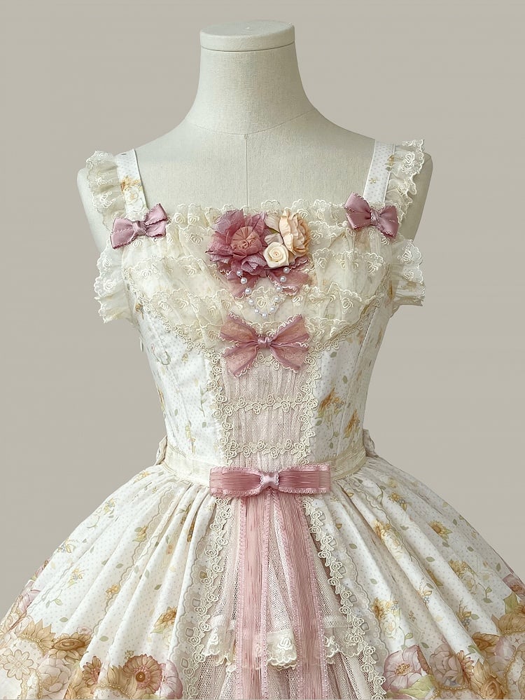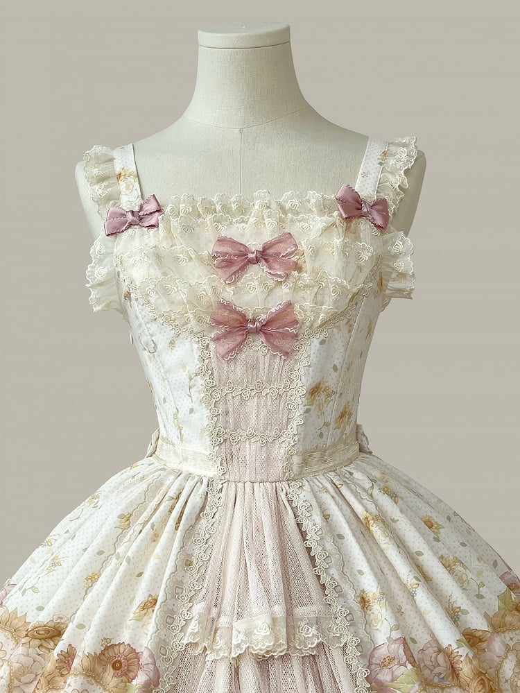 Pink and White Old School Lolita Fashion Dress Bowknot Detais Lolita JSK Set