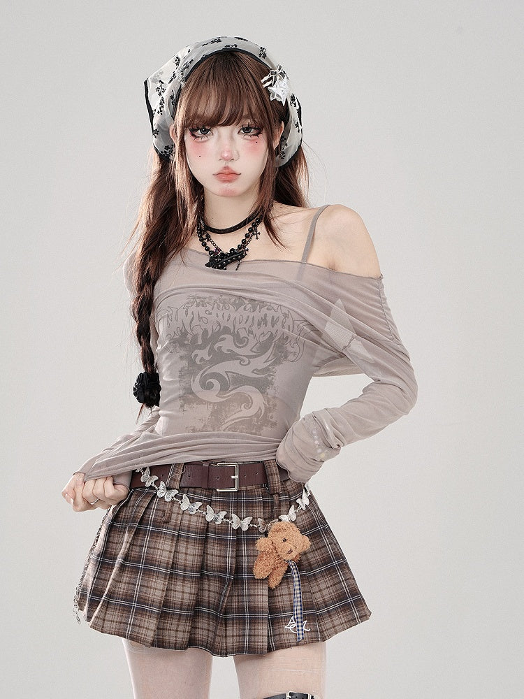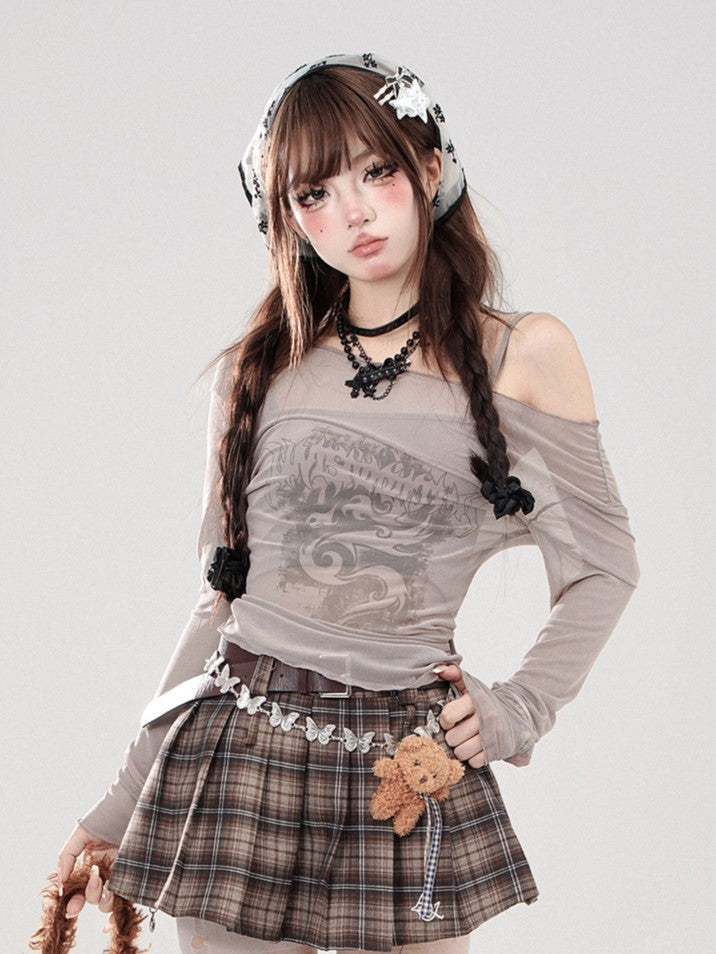 Grey Sheer Off-Shoulder Top & Inner Layer Set