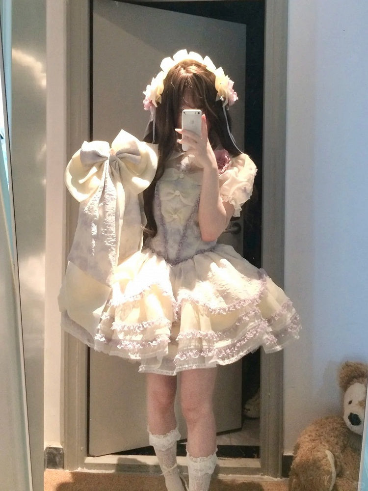 Black and White Old School Lolita Fashion Dress Bowknot Lolita JSK Set