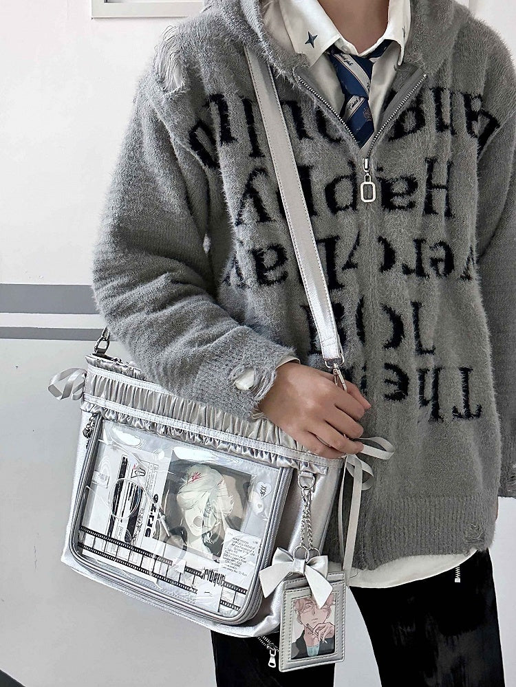 Trim Ita Bag Silver Ribbon Bow Large Capacity Tote Ruffled