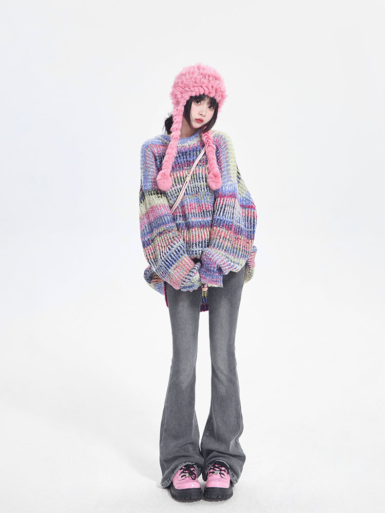 Washed Gray Jeans Low-Rise Flared with Finish Fly Button