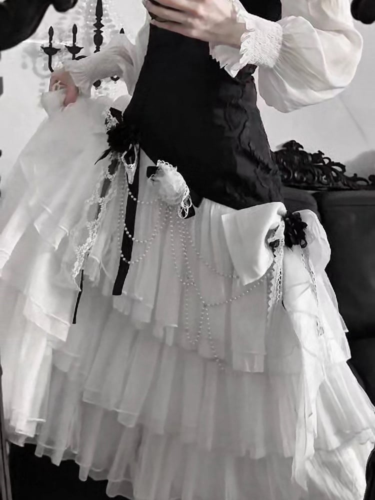 White and Chain Accessory Black Bead Bowknots Flowers