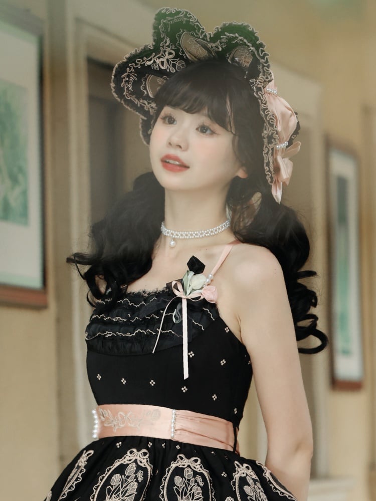 Black and White Old School Lolita Fashion Dress Bowknot Lolita JSK Set