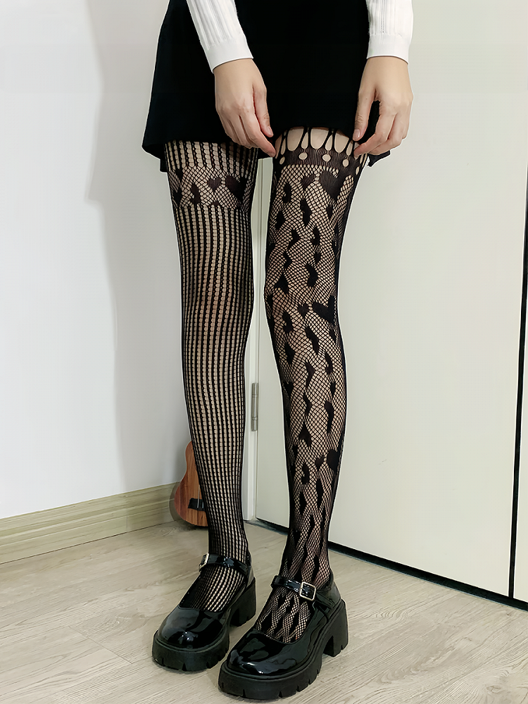 These delicately designed White/Black Lace Heart Hollow-out Tights add a touch of sweetness to any outfit. Made with high-quality materials, they are not only cute but also comfortable to wear. Perfect for adding a charming touch to your wardrobe.