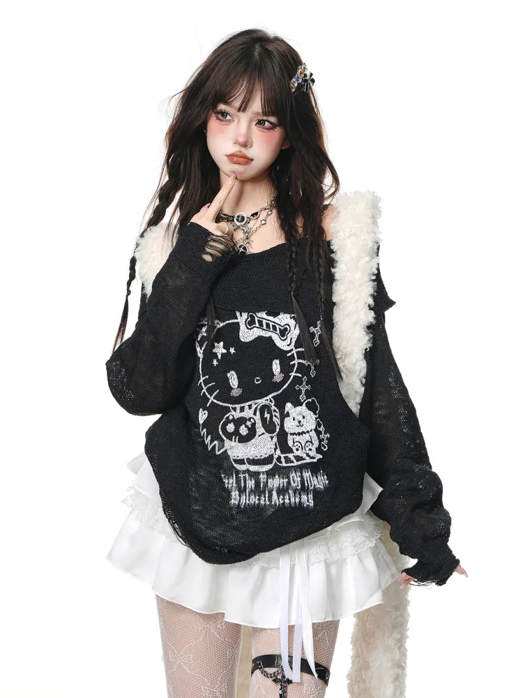 Black and White Old School Lolita Fashion Dress Bowknot Lolita JSK Set