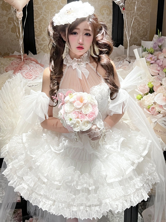 Pink and White Old School Lolita Fashion Dress Bowknot Detais Lolita JSK Set