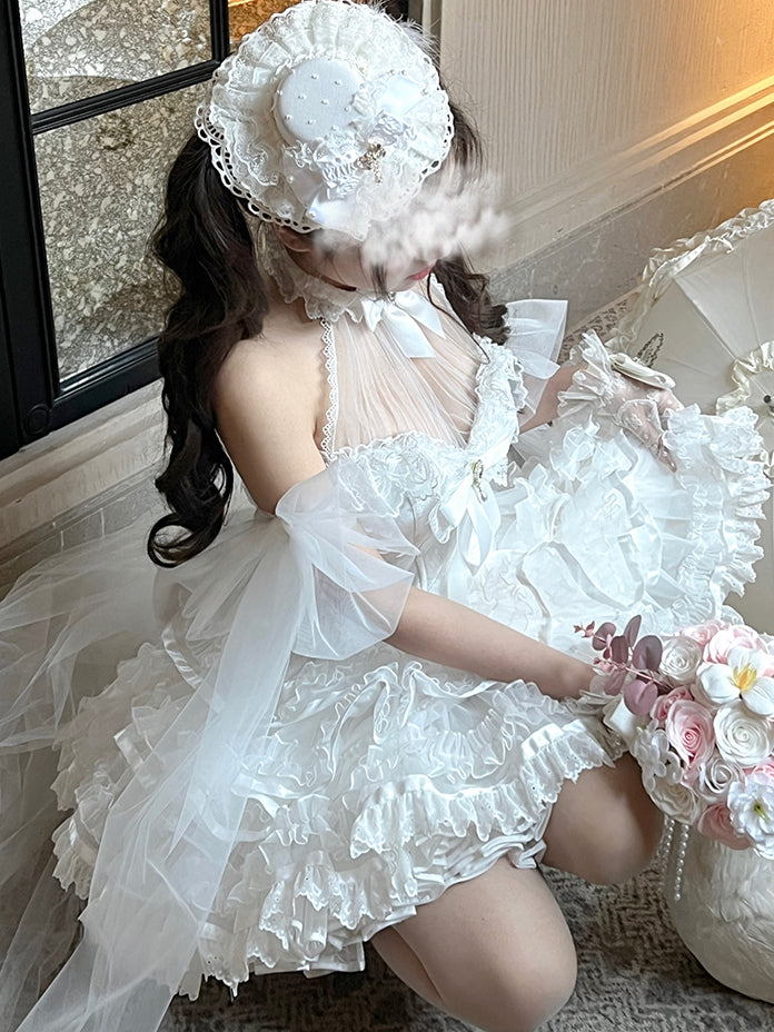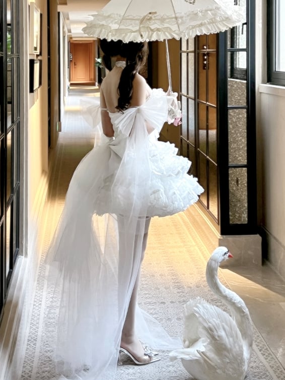 Black and White Old School Lolita Fashion Dress Bowknot Lolita JSK Set