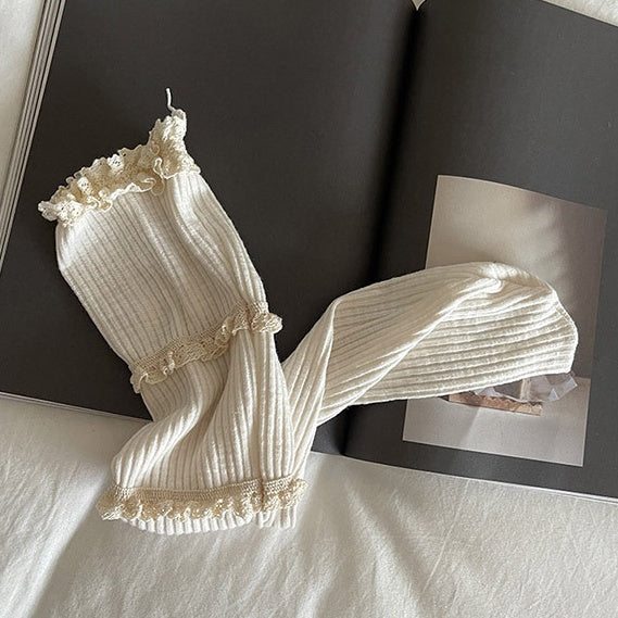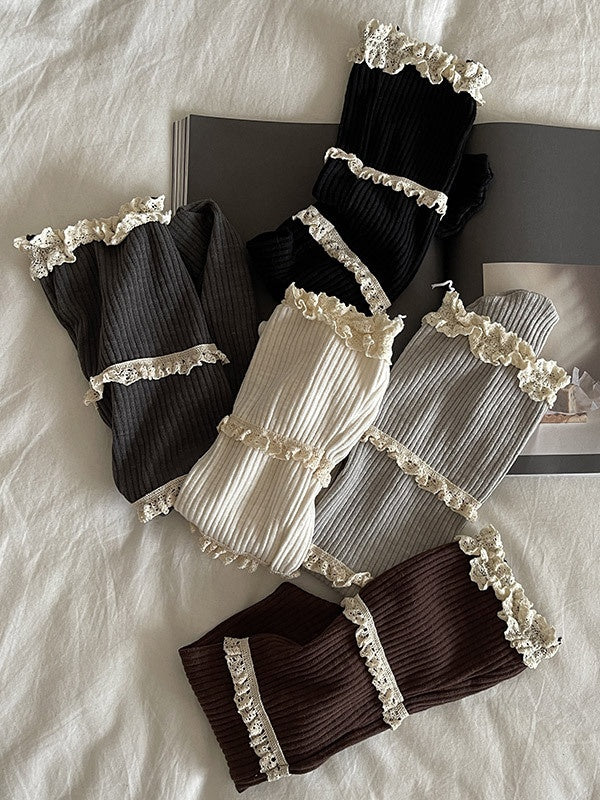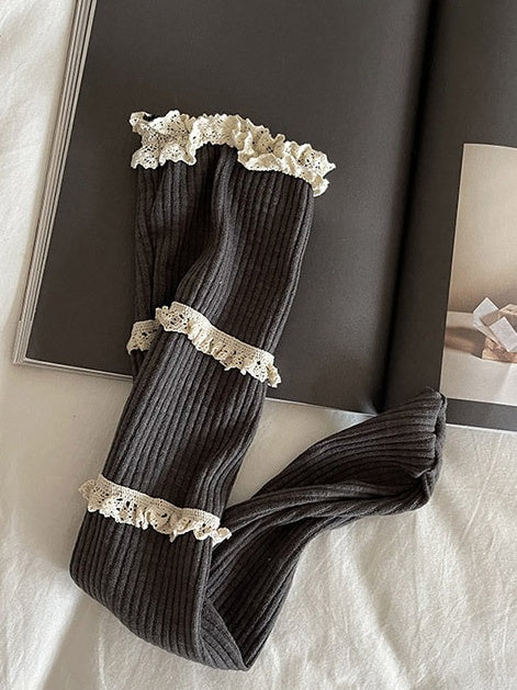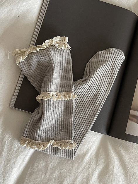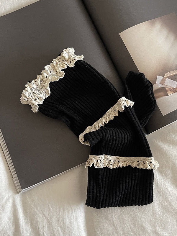 White/Dark Grey Sweet Ruffled Cuff Calf Socks